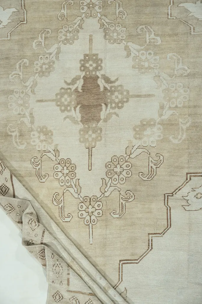 Even today, Oushak rugs are still the first choice of professional interior designers. Sometimes this is because when grading Oushak carpets, carpet connoisseurs will not only look at the overall quality of materials and textures, but also attach great importance to the overall beauty of the carpet. Light colored Oushaks are among the most popular oriental carpets, known for the high quality of their wool their beautiful patterns and warm colors. Colors: beige/taupe/ivory.
