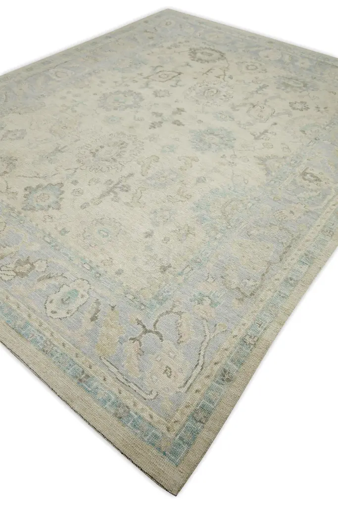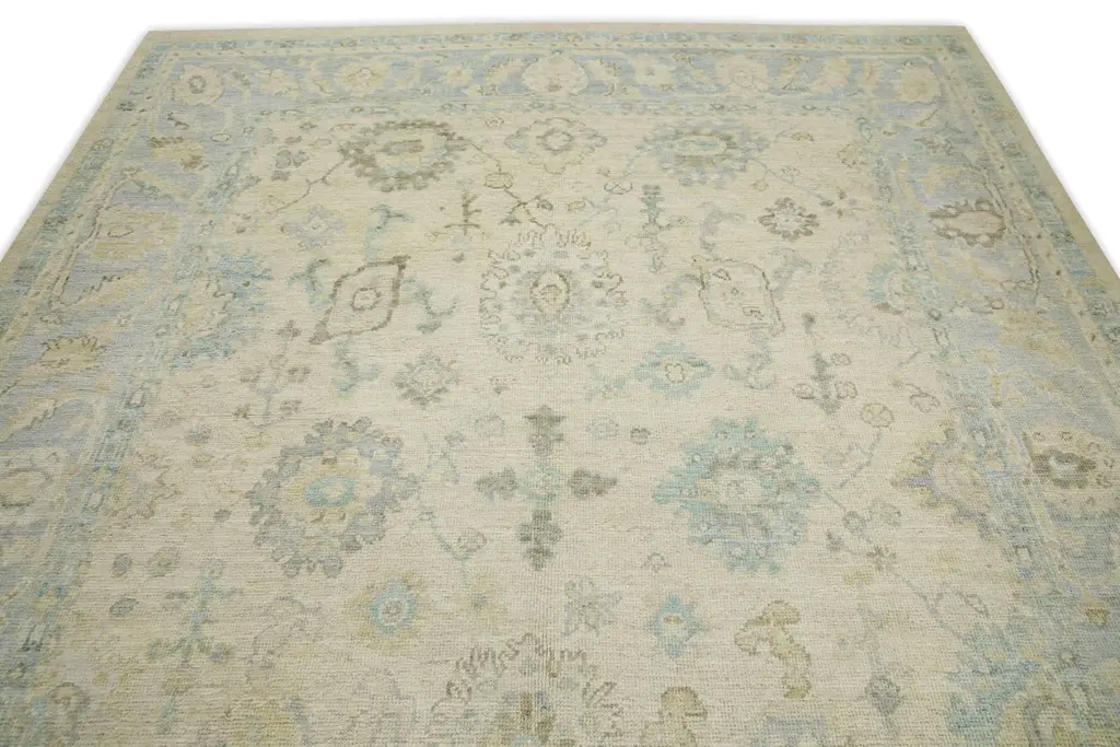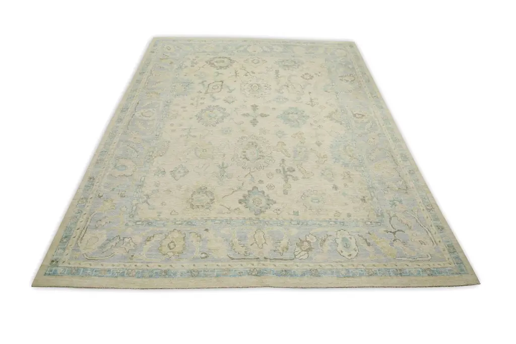 Turkish Oushak Rug Ivory, Blue & Taupe Handwoven Wool Rug 8'2" X 10'3"