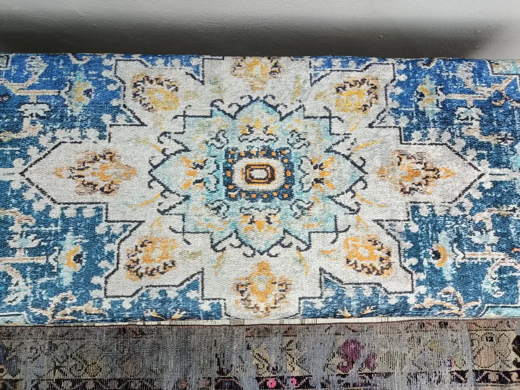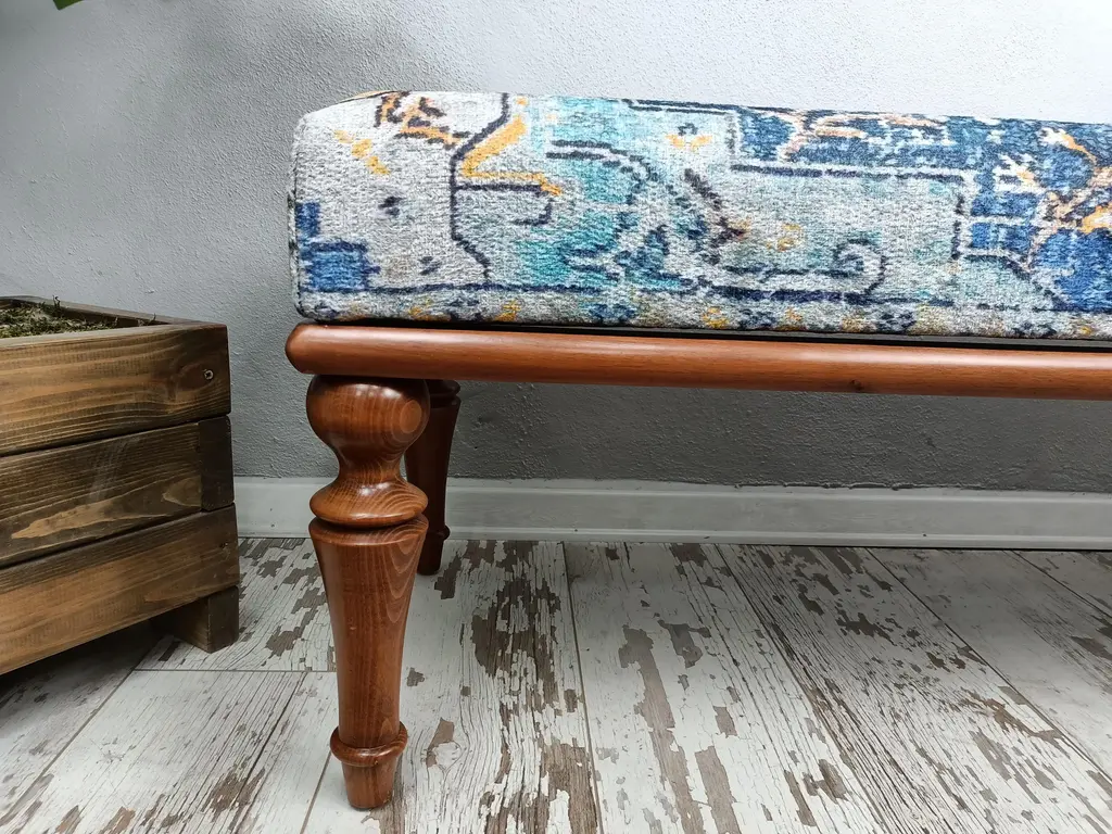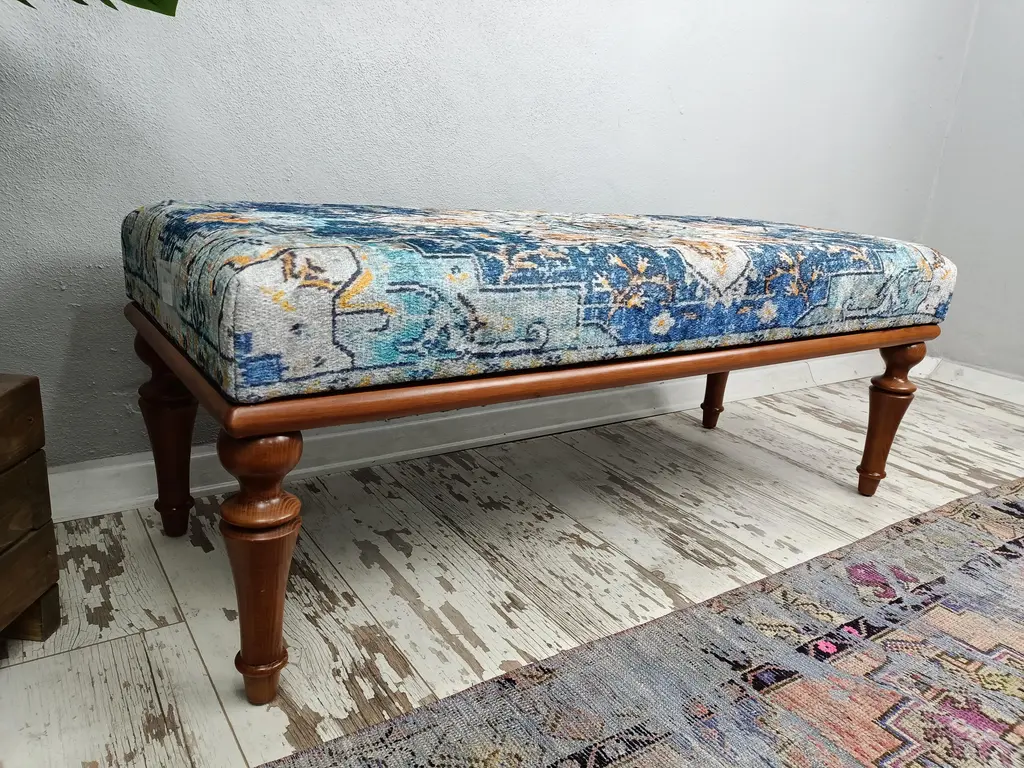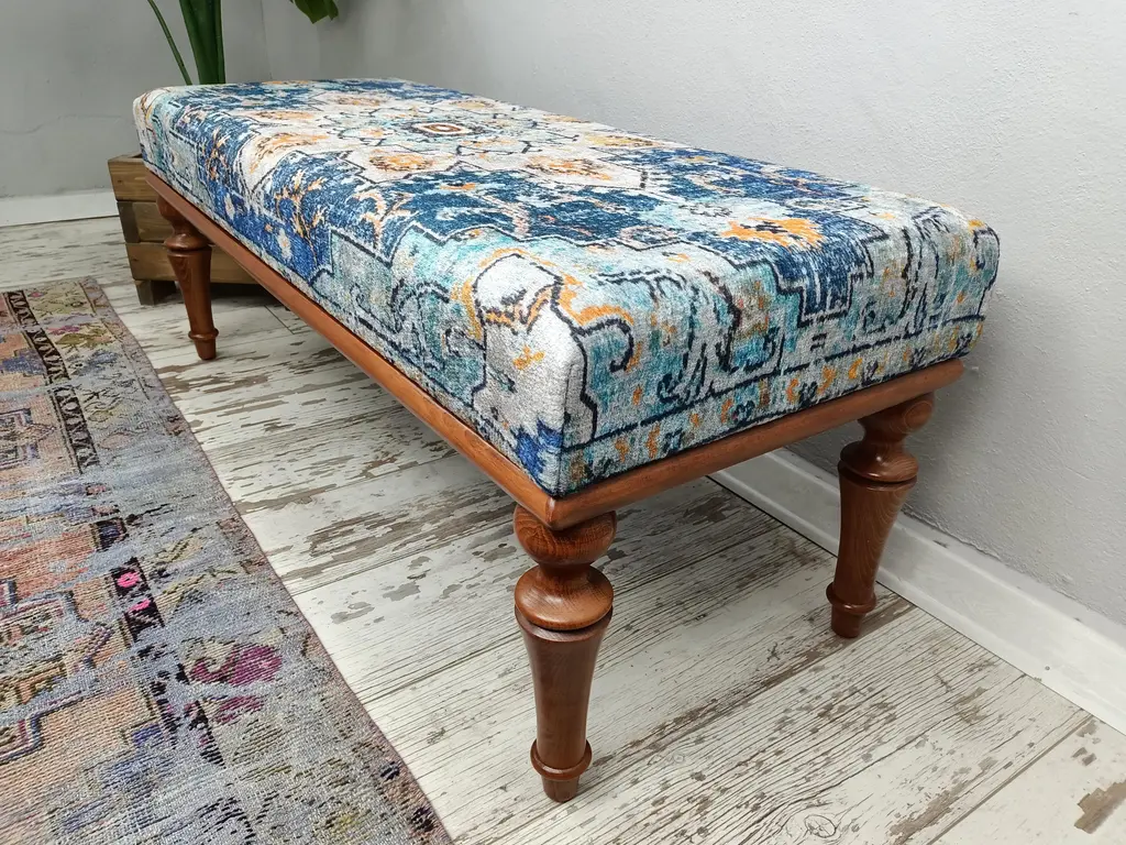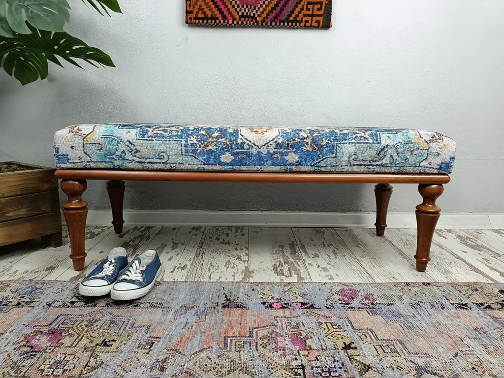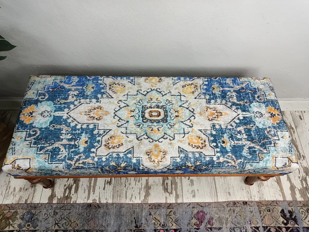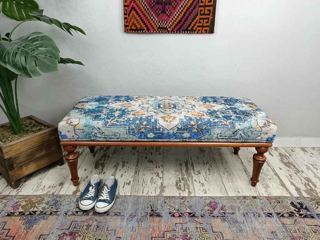 Turkish Rug Print Fabric Upholstered Hallway Bench