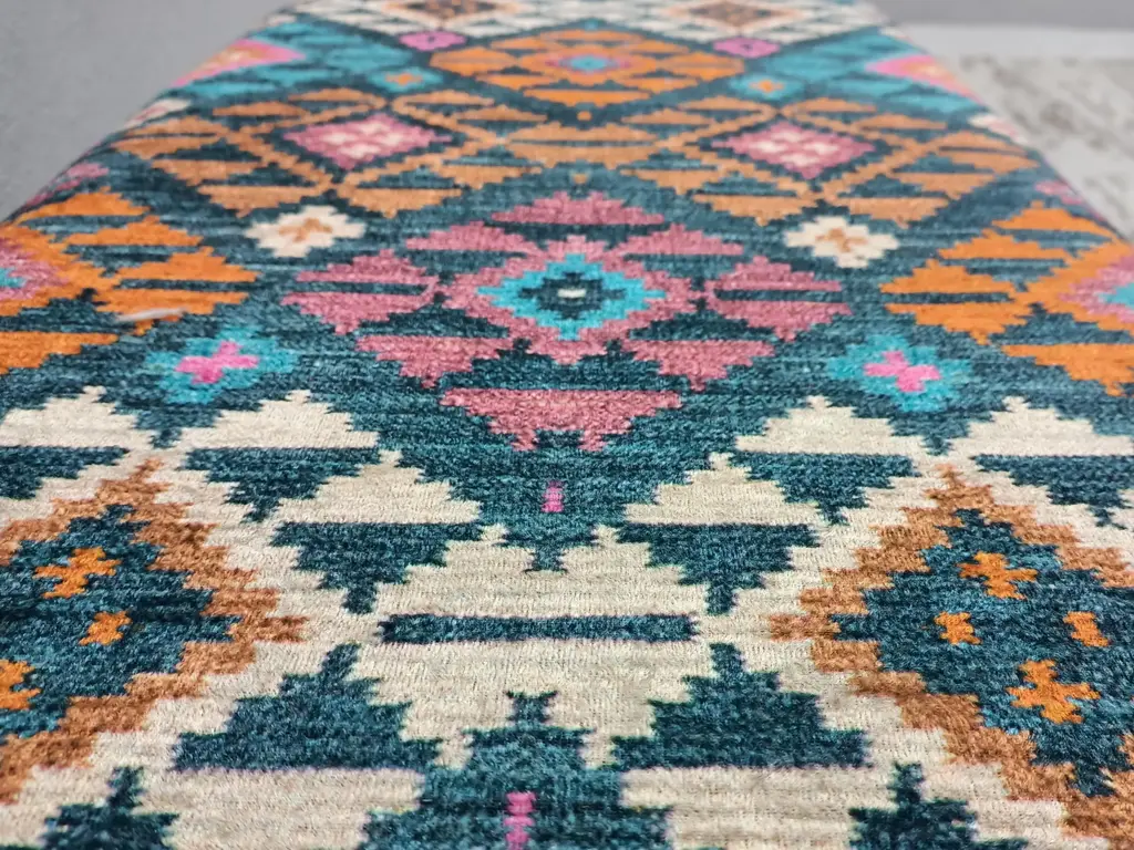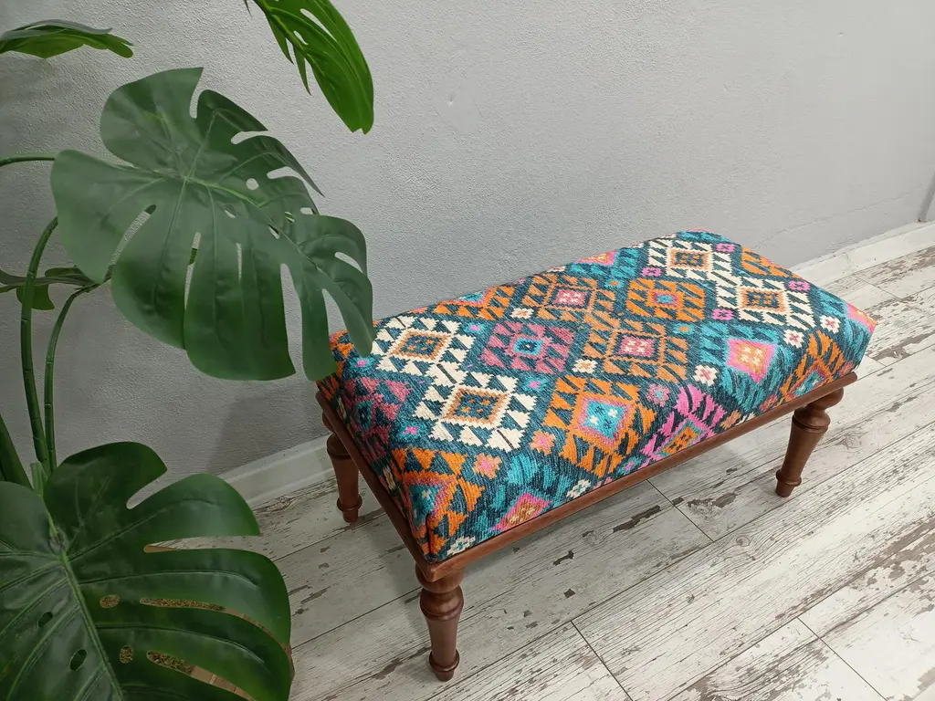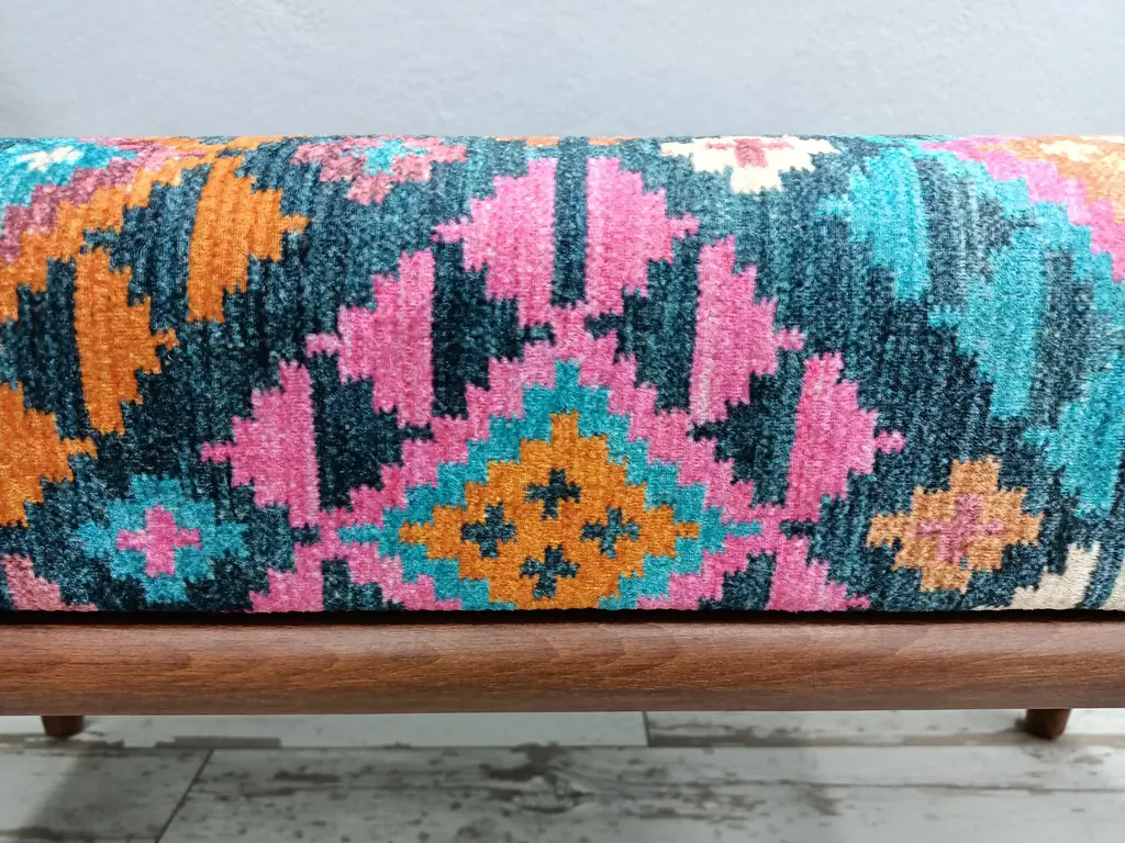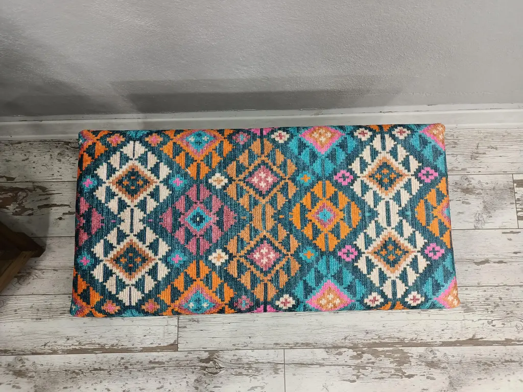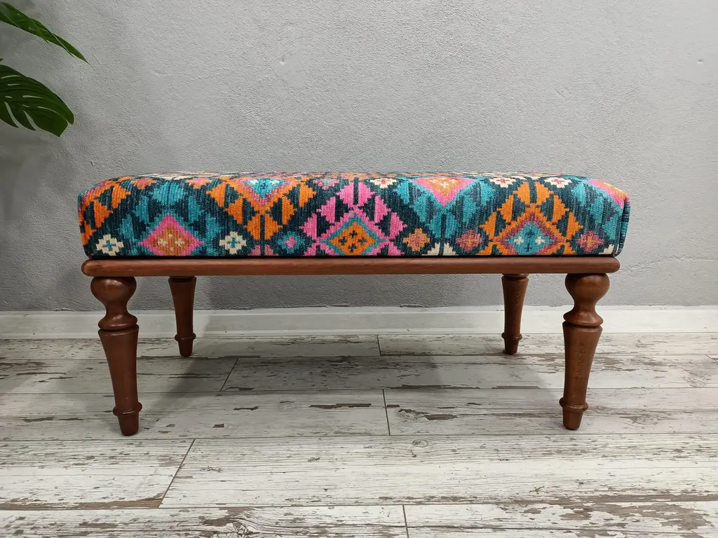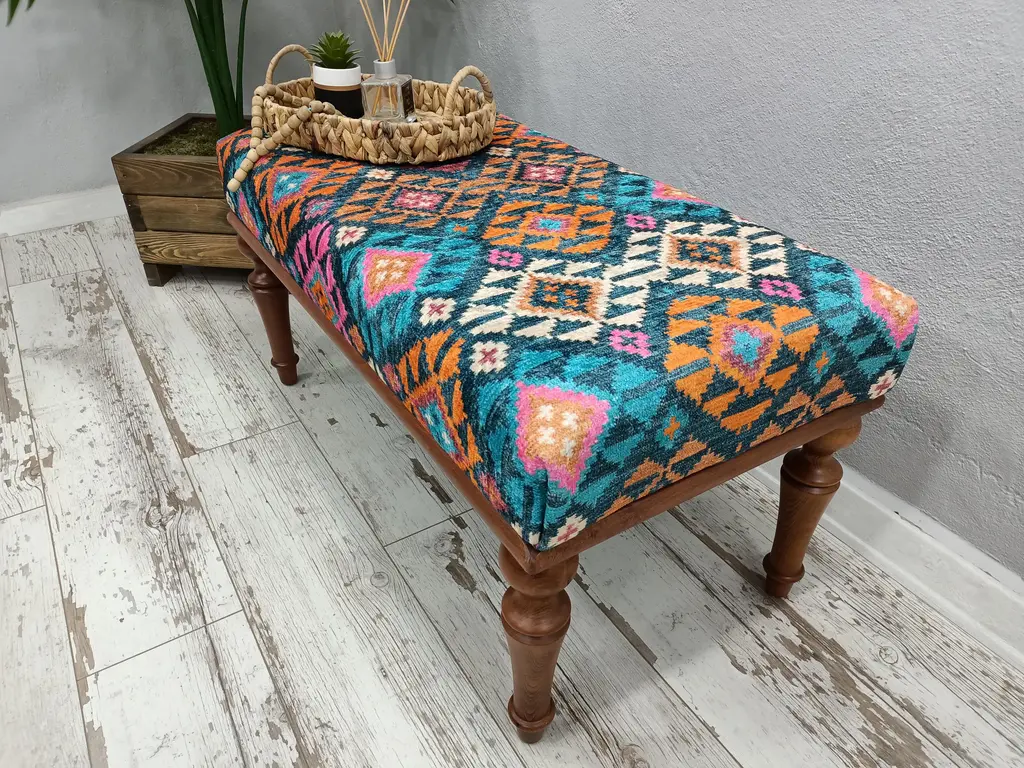 Turkish Rug Print Fabric Upholstered Piano Bench