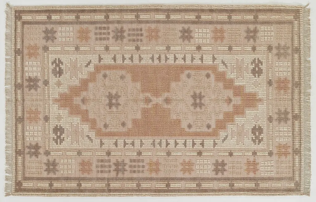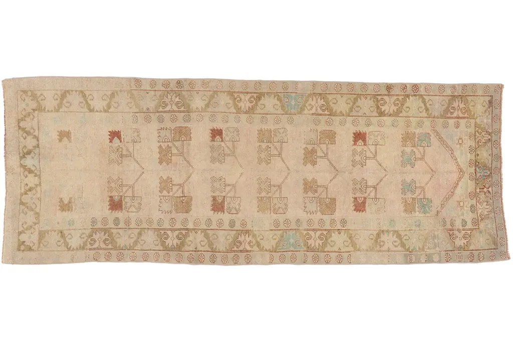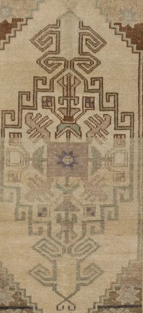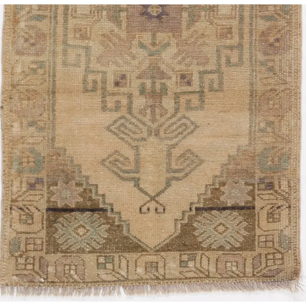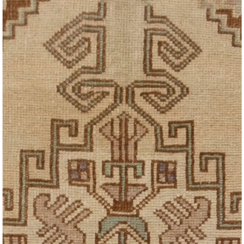 A vintage 1950 Turkish Yastik. Yastik's are small size rugs that are adaptations of traditional Turkish designs. Hand-woven in Turkey, where rug weaving is a culture rather than a business. Colors: beige.