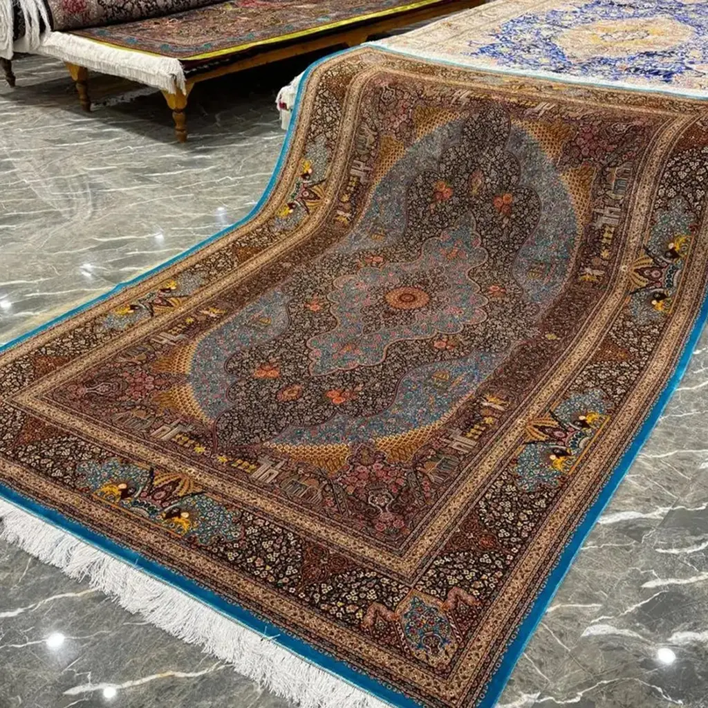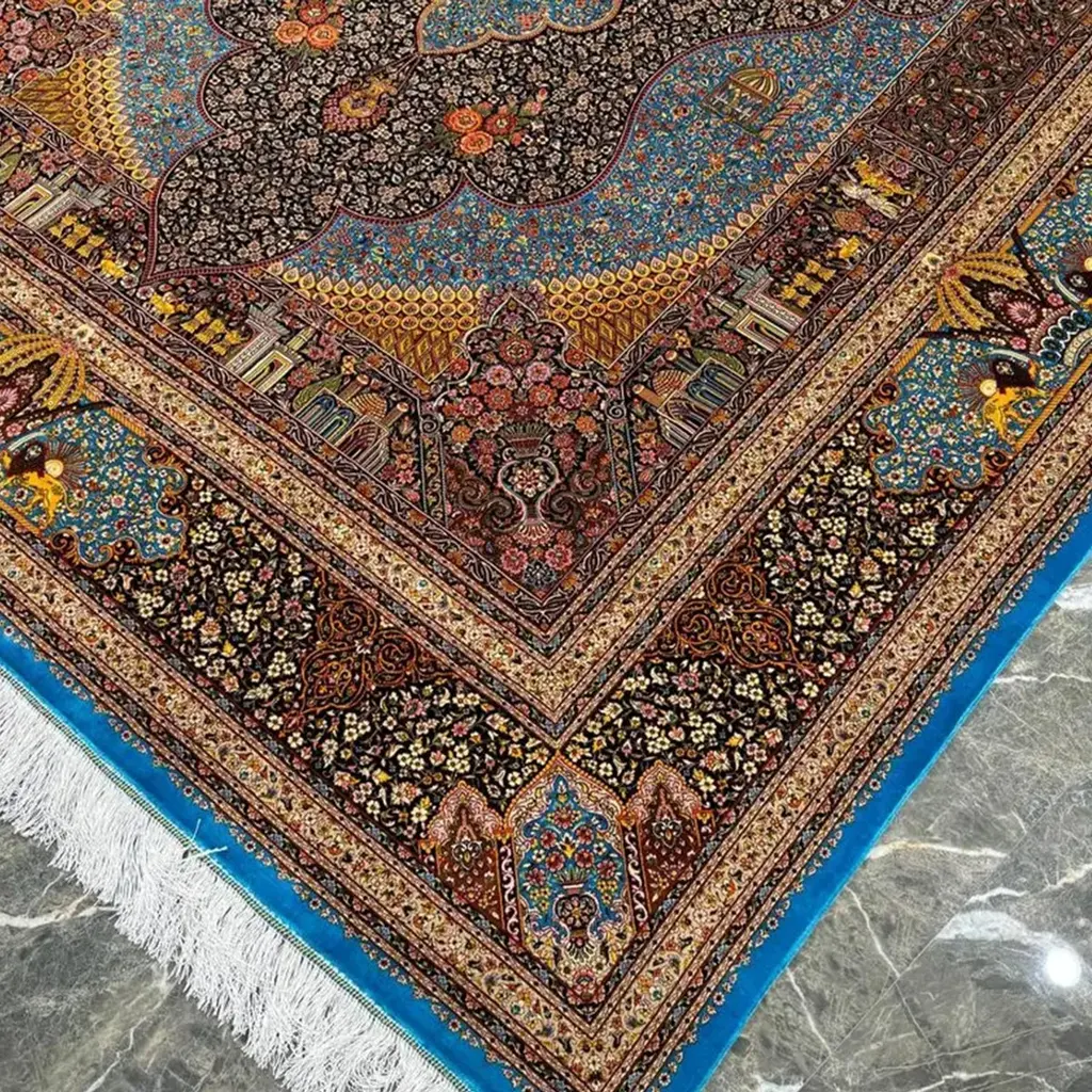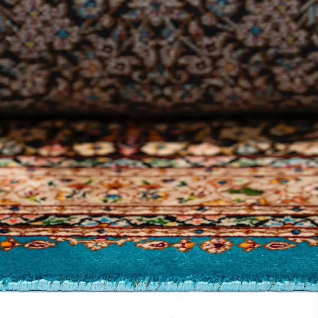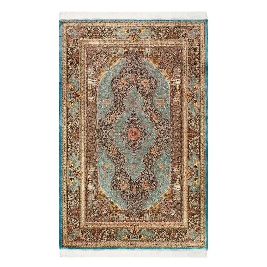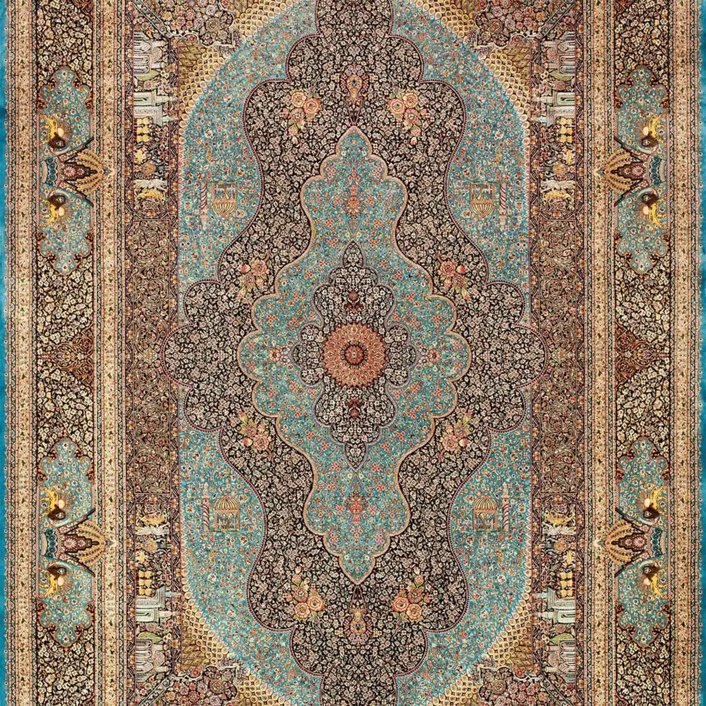 Turquoise Safavid Style Persian Pure Silk Rug, Iranian Craftsmanship, 0044