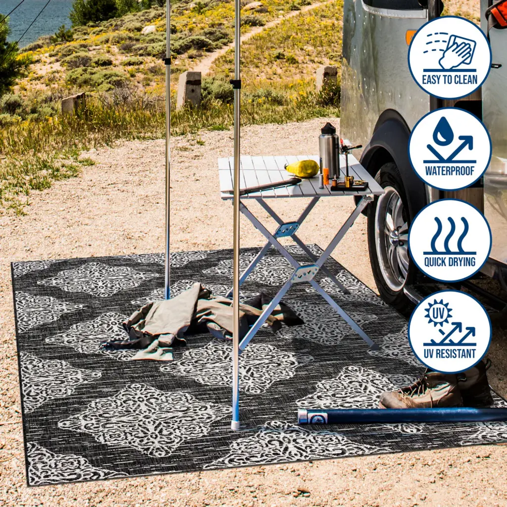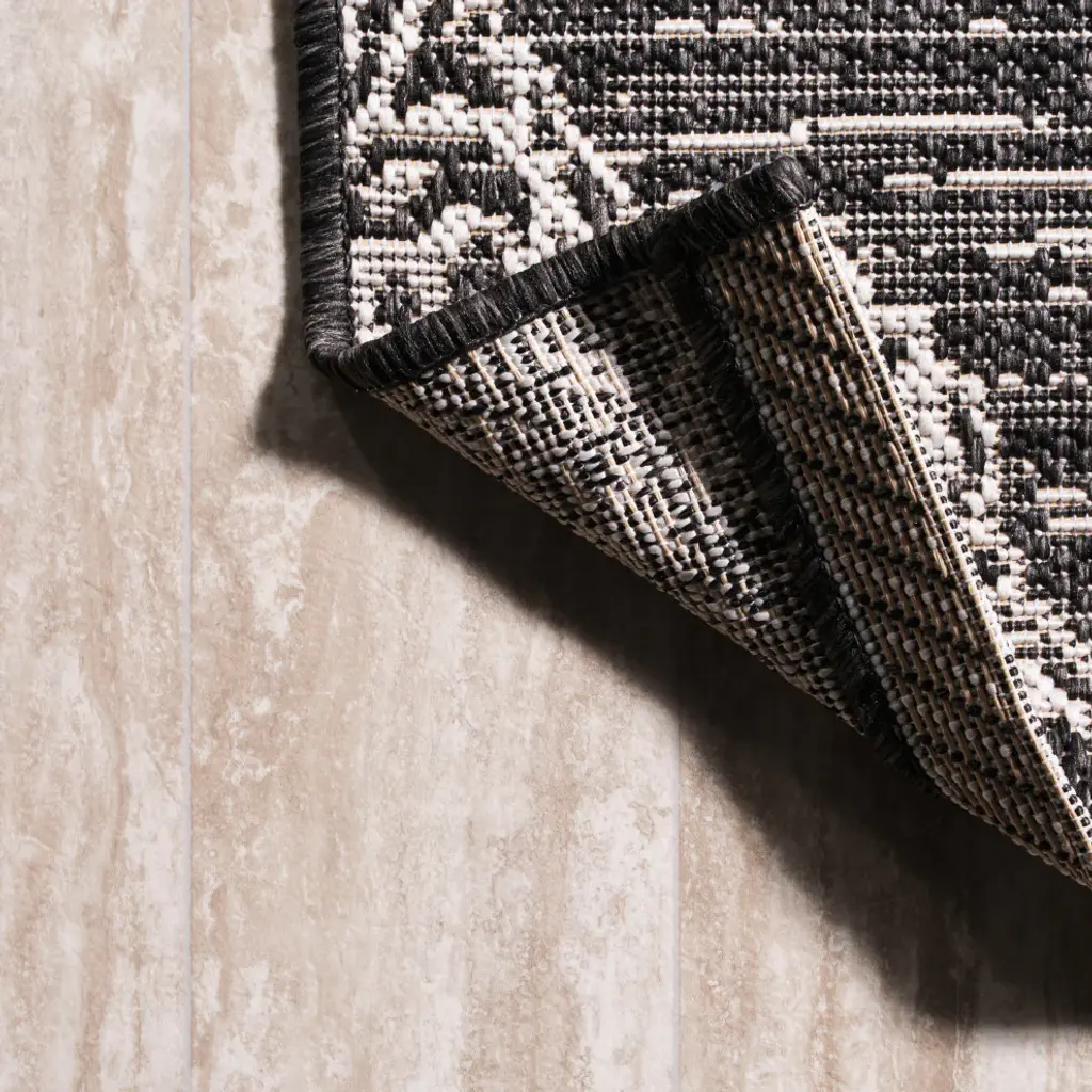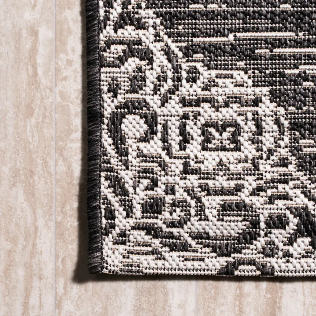 Inspired by the tile floors of Italy, this indoor/outdoor rug adds elegant pattern to your porch, patio or sunroom. Ogee-curved medallions woven in ivory add graphic punch to a deep black background. Mingled threads give this pattern a handwoven, vintage vibe that''s perfect for an entry, kitchen, hallway, living room or bedroom too. The pet-friendly and kid-proof flatweave design makes it easy to clean, and perfect for the beach house.Features:• Flat-weave construction of 100% polypropylene• The ivory pattern against a black background is a timeless black-and-white combination• Durable and easy-care - just sweep or hose down with mild soap and water• 100% Polypropylene• No backing, use of rug pad is recommended (sold separately)• Power Loomed in Turkey• Actual Dimension: 2 ft. 2 in. x 8 ft.• Color: Black/Ivory• Thickness measures: 0.19 in.• Available in multiple sizes and/or colorsRug Care:• Durable and easy-care - just sweep or hose down with mild soap and water• Packing and shipping may cause temporary creases in rugs, which will flatten out after a week on the floor; to expedite the process, try back-rolling your rug before laying it down, and then allow ample time for the remaining creases to relax• Please Note: Due to differences in monitors, some rug colors may vary slightly. Lengths and widths may vary from the published dimensions. Patterns may vary slightly according to shape and size selected.About us:Style your floors with JONATHAN Y. By combining fine craftsmanship and design, this New York creative studio is bringing fashion to your floors. The collection mixes sustainable organic materials, vibrant colors and trend worthy styles to create JONATHAN Y''s distinctive catalog of rugs.