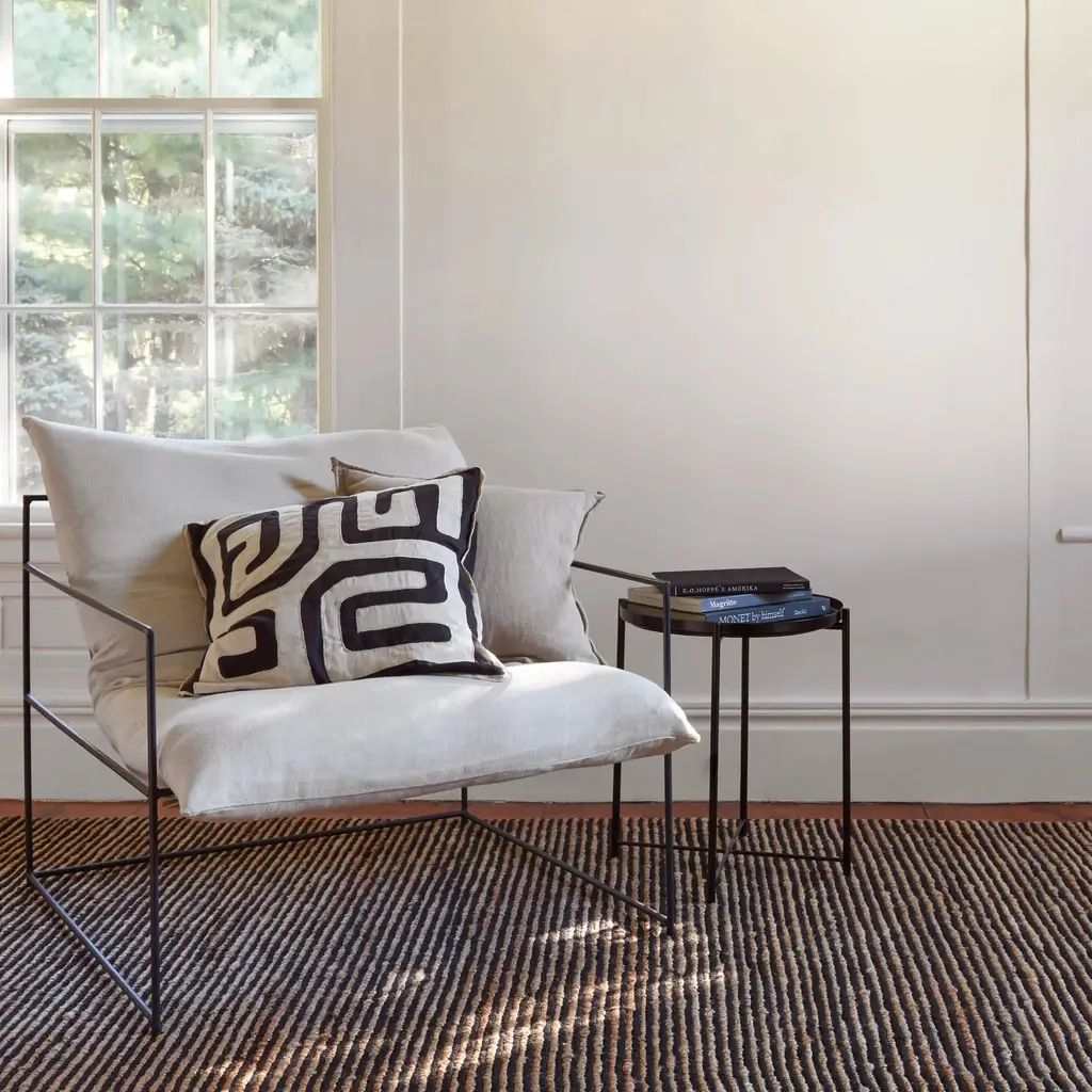 Combining a low profile surface with a dramatic nubby texture, this hardworking and durable rug features undyed Natural jute stripes combined with the warmth and comfort of Black wool. From our Bunny Williams collection.