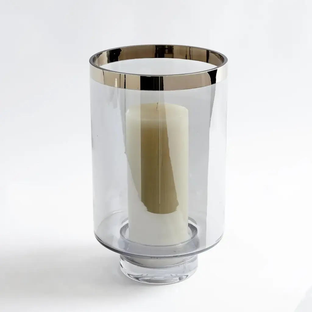 Hand Blown Smoked Glass With Decal Applied Platinum Rim Around Top Edge From a fashion forward perspective, Global Views offers accessories, furniture, statement lighting, and an assortment of rugs and mirrors to add beauty and joy to your home.