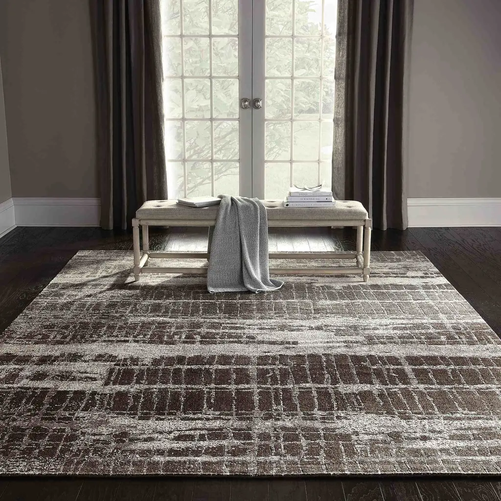 Stunning striations in scintillating shades of hazel create a focal piece rug in grey-brown tones ... a wonderfully modern neutral. At once strong and subtle, and imbued with a gentle luminosity, this masterwork textile brings visual excitement to the contemporary room.Soft and serene, the Twilight Collection area rugs reflect the special beauty of early evening in its treatment of light and in its dappled neutral colors and rich brights. Ideal for the fashion-forward decorator who is looking for an original and modern look in floor coverings, Twilight delivers artful sophistication in a choice of patterned and abstract designs. Imbued with subtle sheen, these scintillating wool-blend rugs are a perfect complement to today's leading trends in contemporary furnishings. Enhance your unique environment with the subtle elegance and lustrous appeal of Twilight. Ships In 7-10 Business Days Ships In 7-10 Business Days Rug pad recommended Custom sizes available Silky soft texture Holds up well under moderate foot traffic Slight variations in color from product to product are natural characteristics of high quality handcrafted home decor. Your product may not exactly match what is pictured on this page.