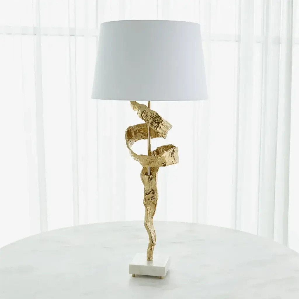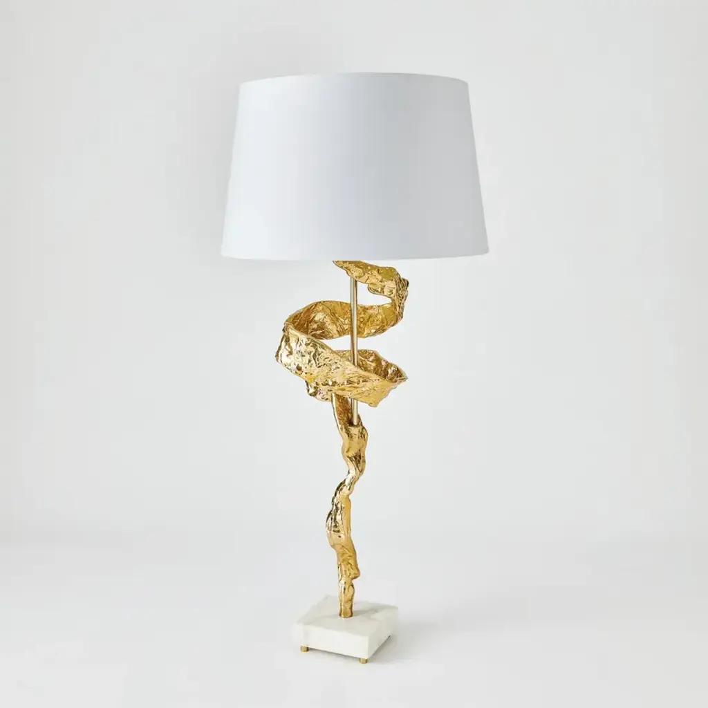 Our Twist Lamp is a large, high-quality statement piece with a shiny brass finish, white marble base, and hardback fabric shade. From a fashion forward perspective, Global Views offers accessories, furniture, statement lighting, and an assortment of rugs and mirrors to add beauty and joy to your home.