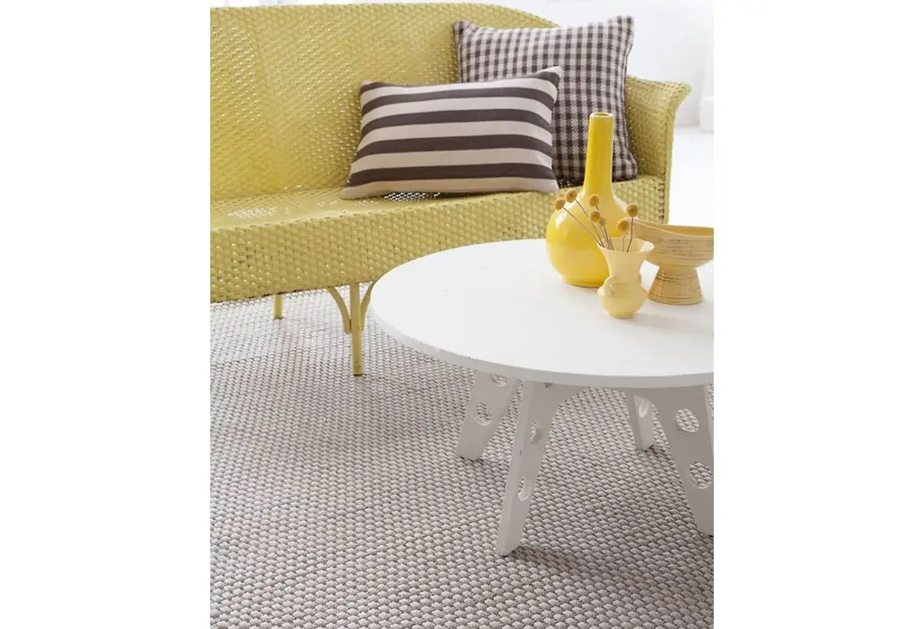 Featuring a two-tone rope design, this rug is made of durable polypropylene, an easy-to-clean material that can withstand the elements and resists wear and tear. Perfect for use on the porch or patio, it can also be brought indoors to protect flooring in high-traffic areas. We recommend a rug pad to extend the life of the rug and keep it securely in place.