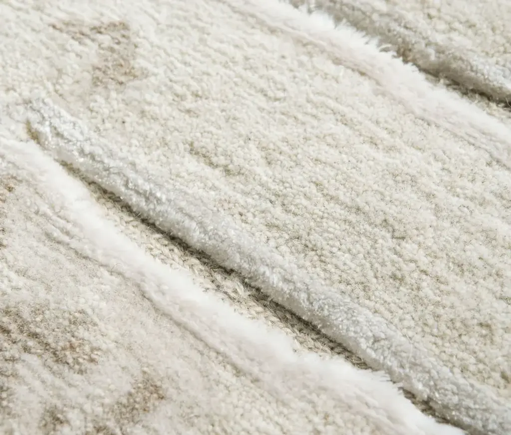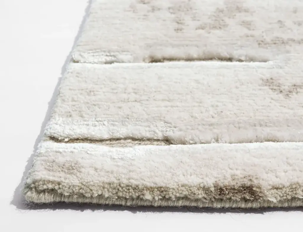Material: Wool, Bamboo Silk, AlloKnot Density: 80 knots/inch²Pile Height: 2 - 6mmTechnique: Hand-knottedCustom sizes and colors on requestThe "ideal home," a safe place where answers to design needs coexist with ethically sourced, natural materials, inspires the Maison Six collection. The intricate designs, featuring complex patterns and soft and natural tones, where surfaces appear grooved and soft simultaneously, create a harmonious and balanced environment, perfect for any modern home and every human, even the youngest. The Maison Six hand-knotted collection focused on comfort, well-being, and more sustainable, durable, ecological, and healthy choices. The composition of wool, silk, bamboo silk and allo can be replaced by hypoallergenic and recycled fibers to be a good fit in any house room.The Two White rug is available in 66% wool, 18% bamboo silk, and 16% allo, 80 knots/inch², 2-6 mm pile height, in the four standard sizes or custom-made.