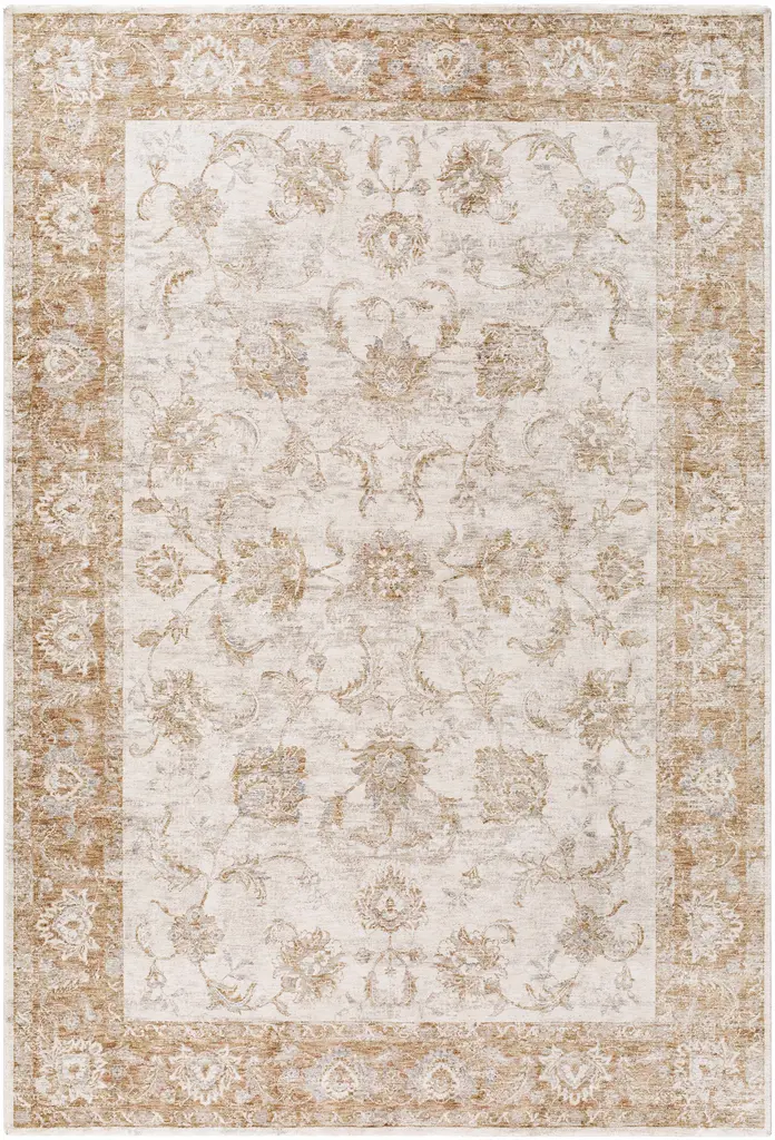 Collection: Tylie Colors: Cream, Tan, Blue, Medium Gray, Light Brown Construction: Machine Woven Material: 100% Polyester Pile: Medium Pile Pile Height: 0.31" Styles: Traditional Made In: Turkey Thickness: 0.39" Price Range: $$$$$ (Affordable)