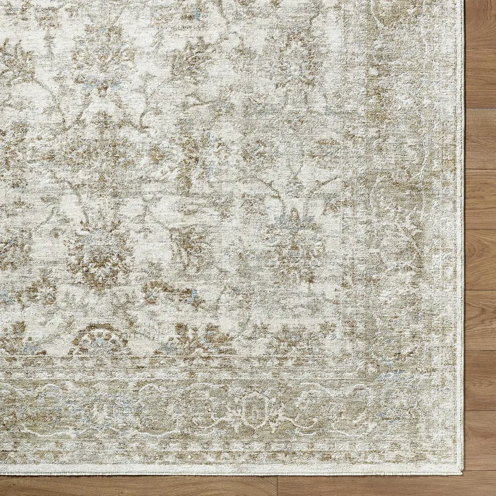 Collection: Tylie Colors: Cream, Tan, Olive, Light Brown Construction: Machine Woven Material: 100% Polyester Pile: Medium Pile Pile Height: 0.31" Styles: Traditional Made In: Turkey Thickness: 0.39" Price Range: $$$$$ (Affordable)