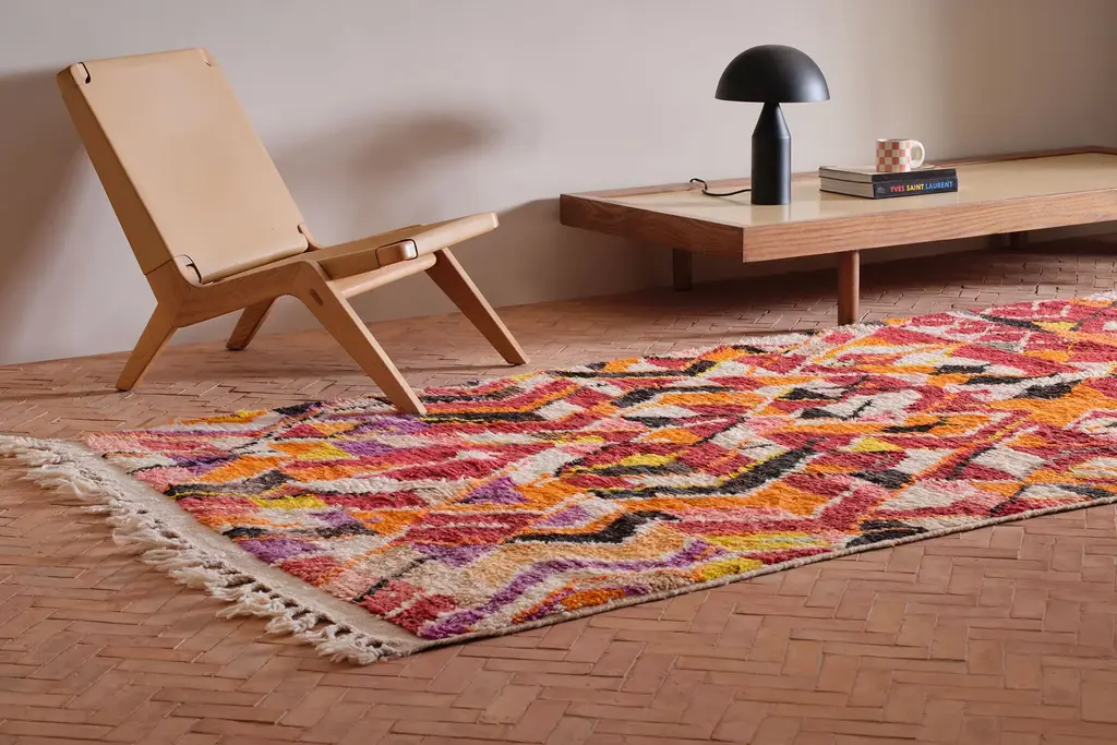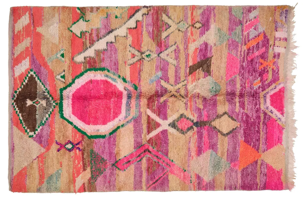 Our Moroccan pieces are each one-of-a-kind. Much of our collection was woven between 30 and 100 years ago, and curated by us. Other rugs in our collection are fresh off the loom and made with traditional techniques. Moroccan rugs don’t come with a key. As with any painting or poem, their motifs have many subjective interpretations. Originally made for personal use, these rugs took months to weave, documenting a shifting tide of events and emotions in the weaver’s life.