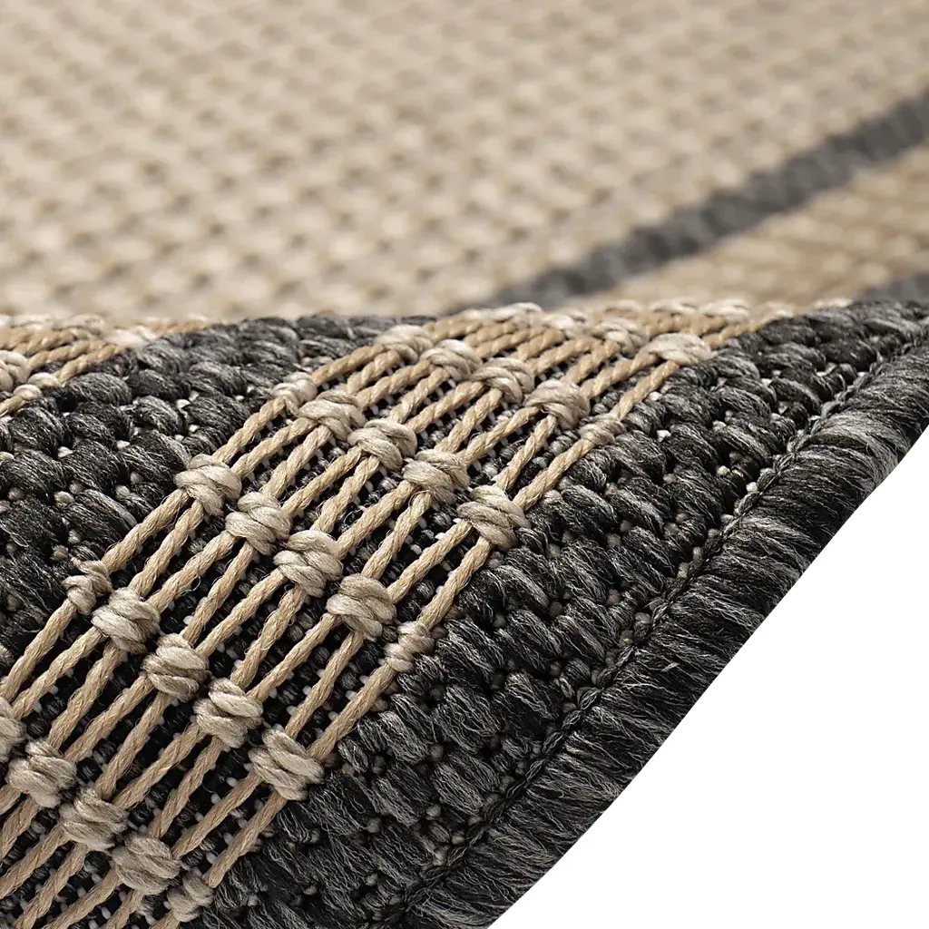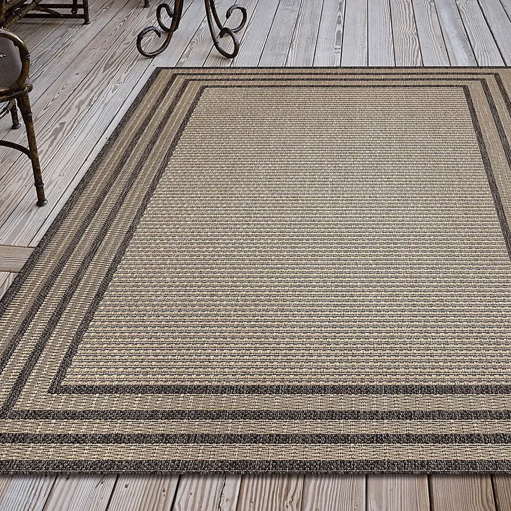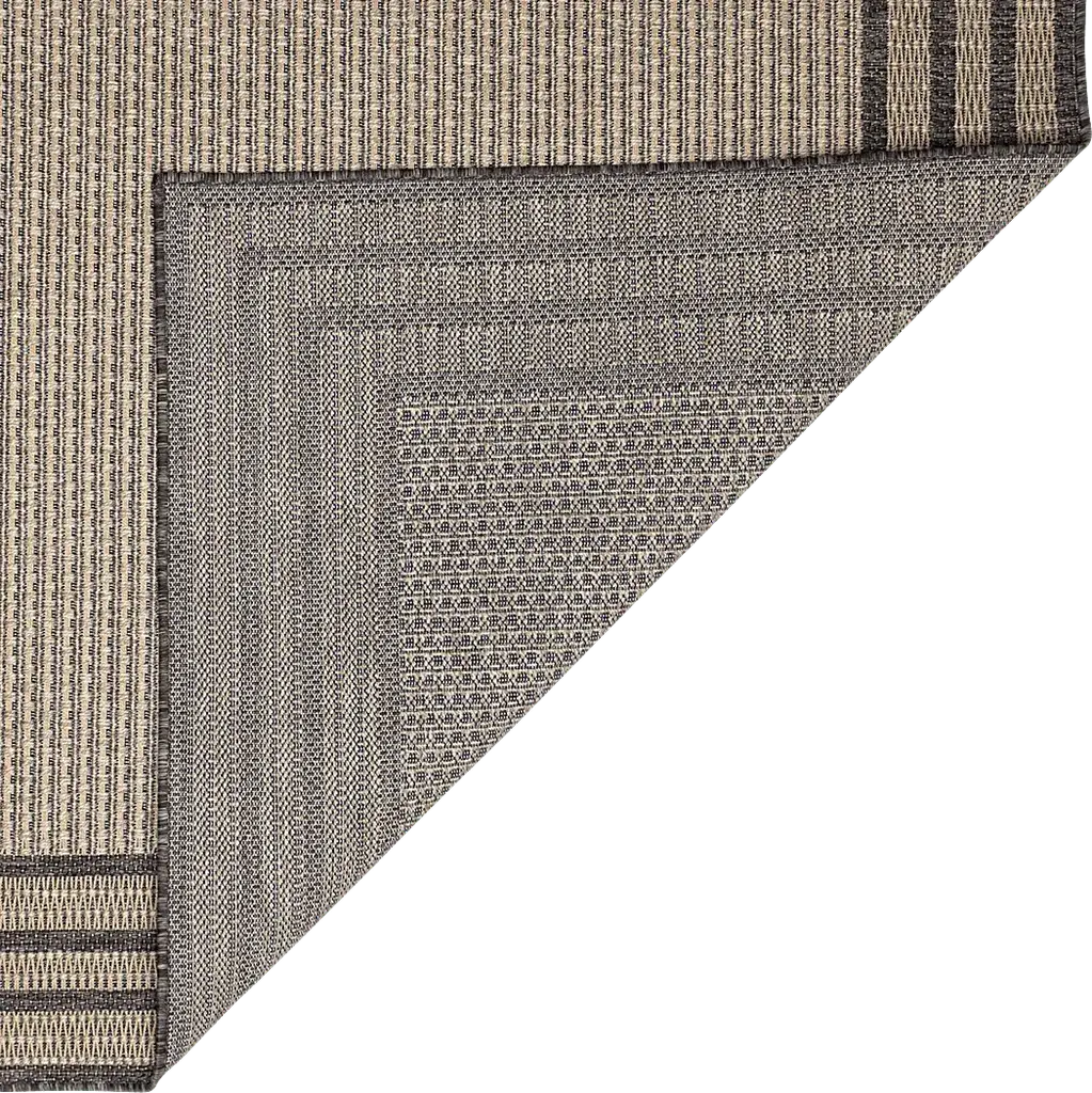 The Typha traditional flatweave area rug features a light taupe center accented by multiple borders in grey creating a visually interesting pattern. Vacuum regularly. Sponge spots to clean. To clean full rug, gently rinse with a solution of mild detergent and water, then hose rug clean. Reducing exposure to rain and moisture will prolong rug life. Use of a rug pad is recommended.