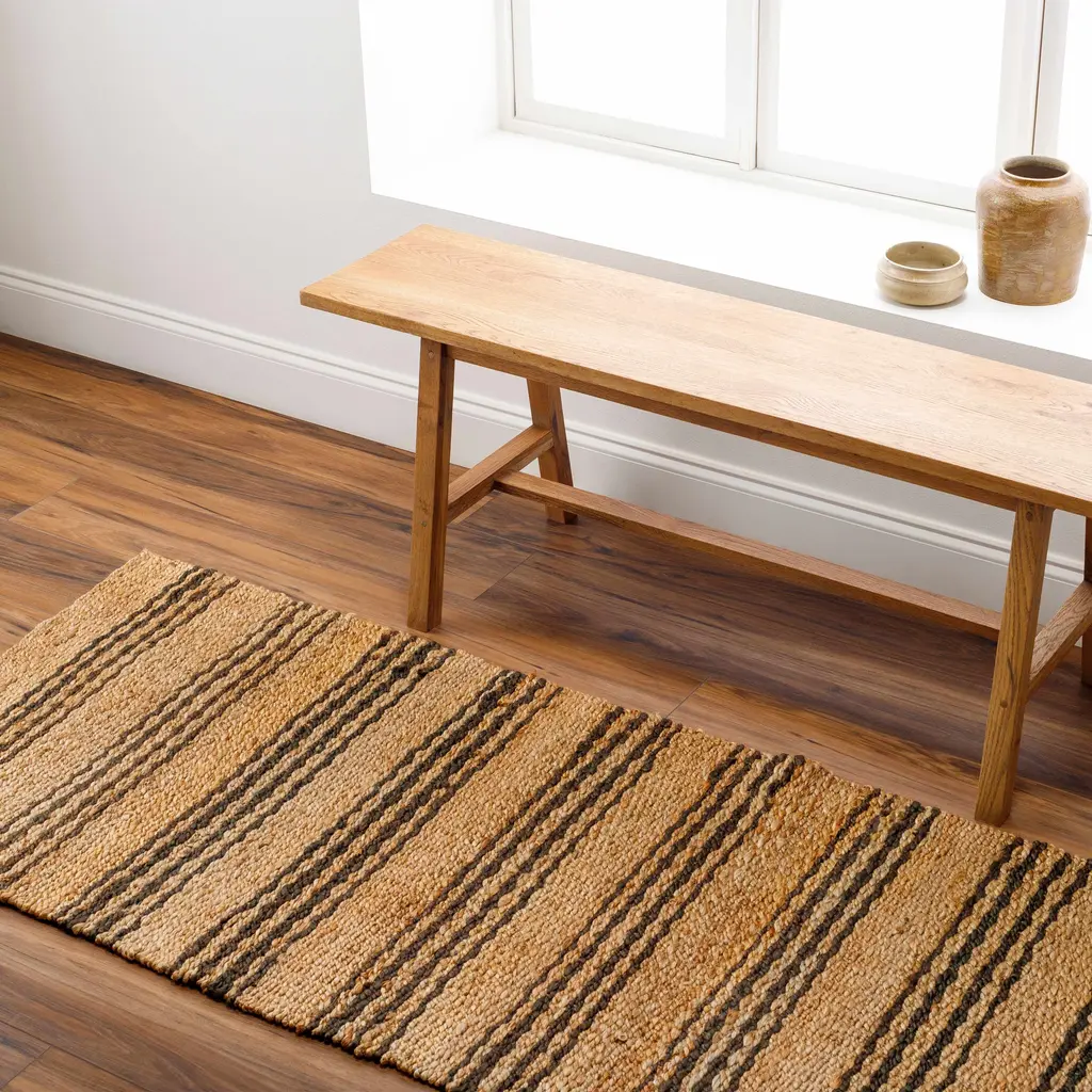 Collection: Uday Colors: Tan, LightBeige Construction: Hand Woven Material: 100% Jute Pile: No Pile Styles: Transitional,Traditional Made In: India Thickness: 0.3" Price Range: $$$$$ (Affordable)