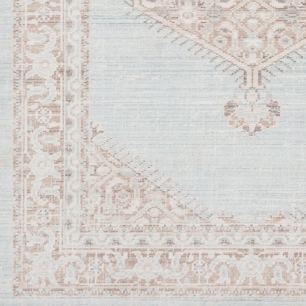 Wonderfully soft underfoot, this rug updates a traditional medallion design with a light, refreshing color palette. We recommend a rug pad to extend the life of your rug and keep it securely in place.