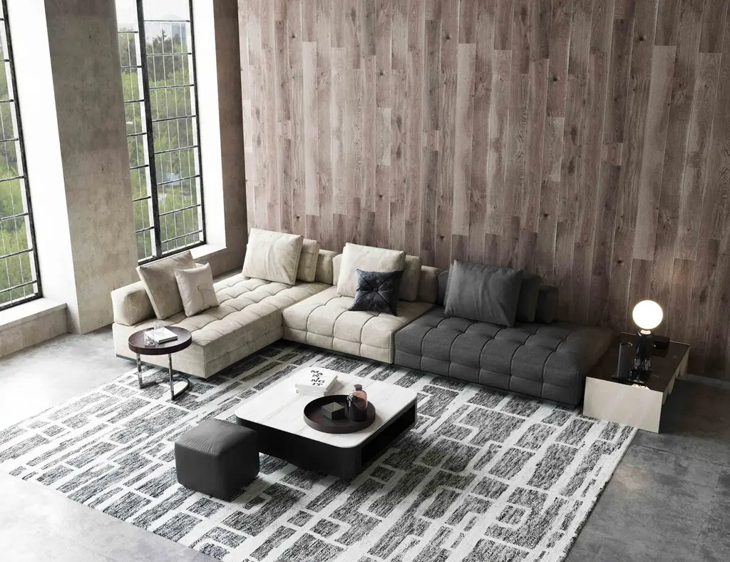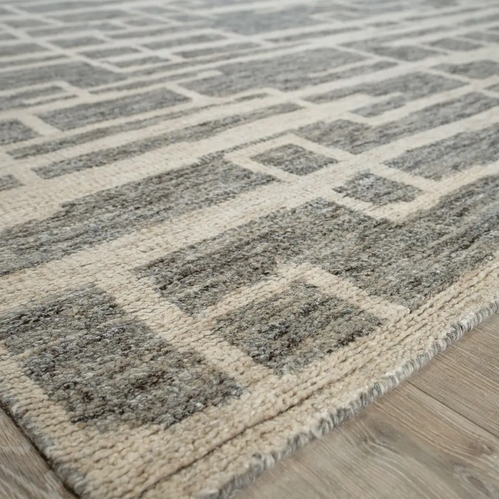 Anchor any room with the rich texture and pattern of the Uinta Rug. Hand-knotted with a luxurious blend of wool and bamboo silk, geometric lines create an eye-catching graphic pattern on this soft low pile rug.
