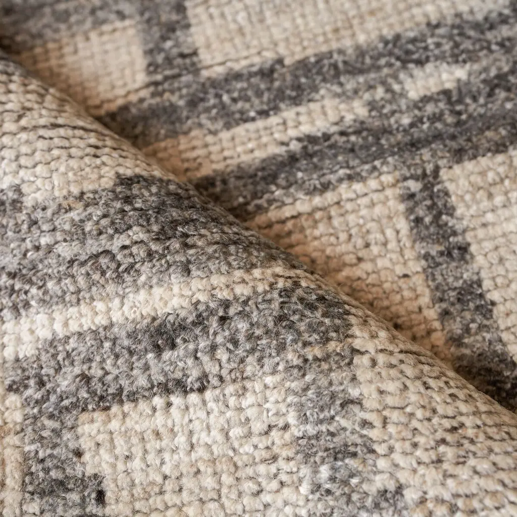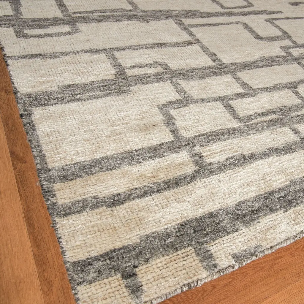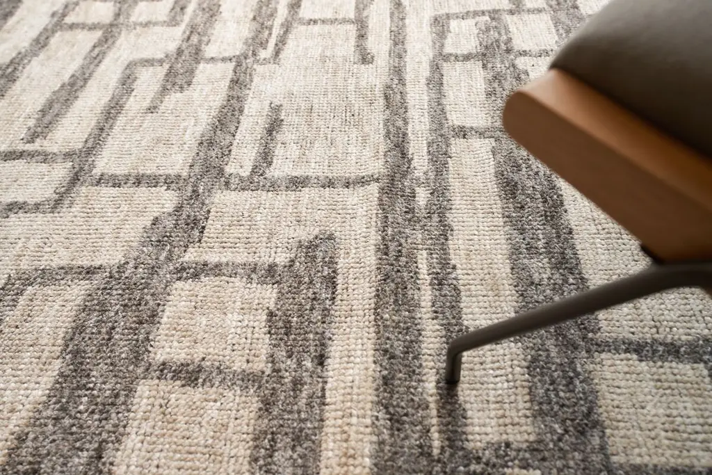 Anchor any room with the rich texture and pattern of the Uinta Rug. Hand-knotted with a luxurious blend of wool and bamboo silk, geometric lines create an eye-catching graphic pattern on this soft low pile rug.