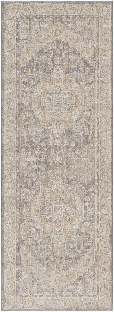 Collection: Ulubey Colors: Denim, Gray, Dark Red, DustySage, LightGray, LightBeige Construction: Machine Woven Material: 90% Polyester,10% Polypropylene Pile: Medium Pile Pile Height: 0.35" Styles: Traditional Made In: Turkey Thickness: 0.54" Fringe Length: 0.5" Price Range: $$$$$ (Affordable)