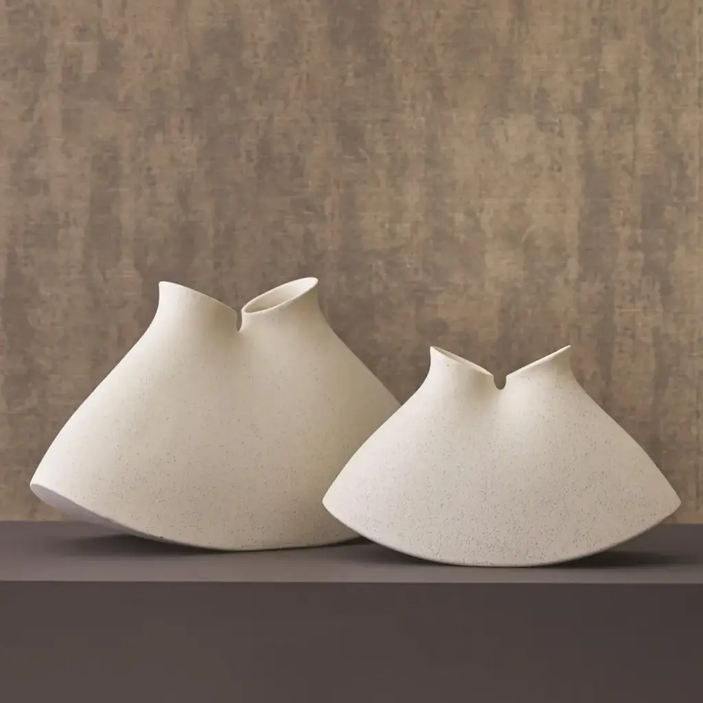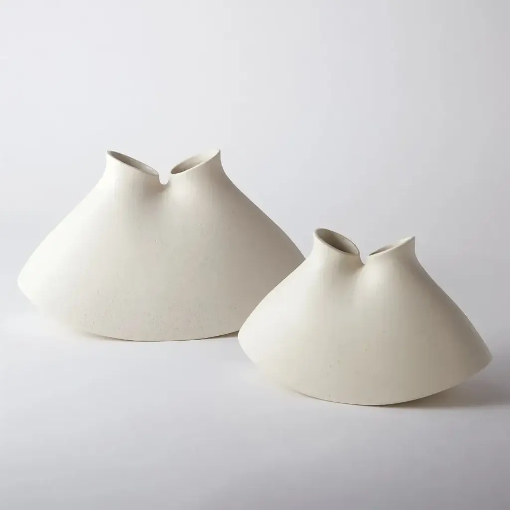 Quirky, curved-bottom vases are made of Portuguese ceramic. Both are equally charming and interest-catching as a floral vessel or sculptural accessory. From a fashion forward perspective, Global Views offers accessories, furniture, statement lighting, and an assortment of rugs and mirrors to add beauty and joy to your home.