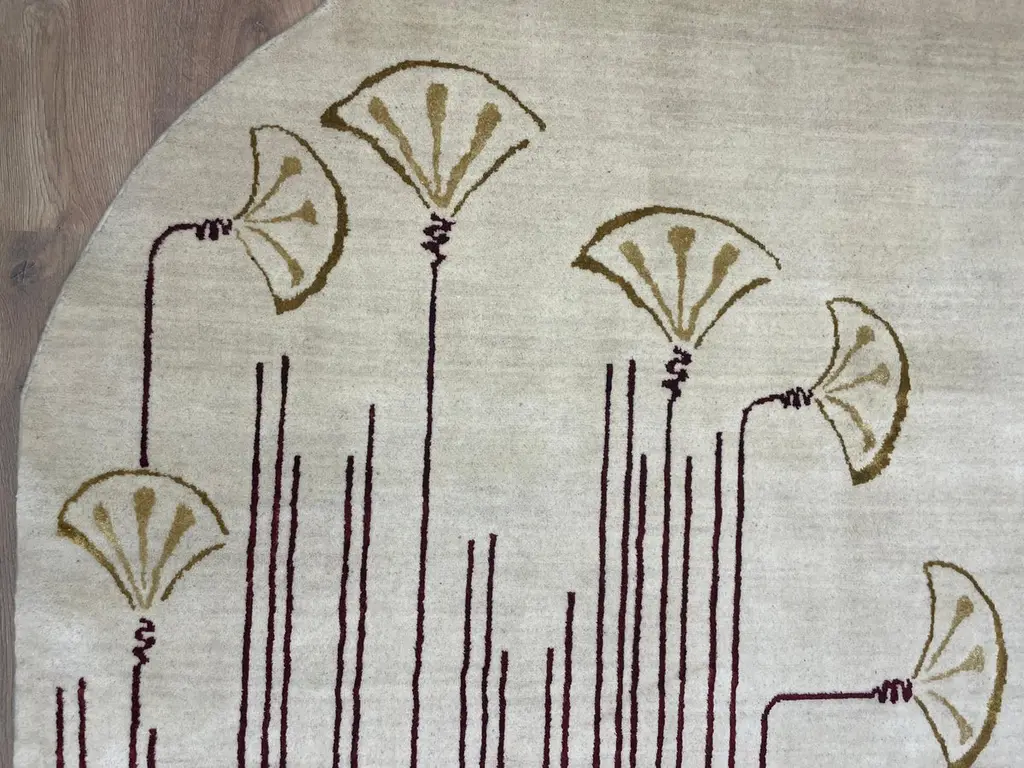 Unique Wool & Bamboo Silk Hand-Knotted Cut-Out Rug With Lotus Flower Design