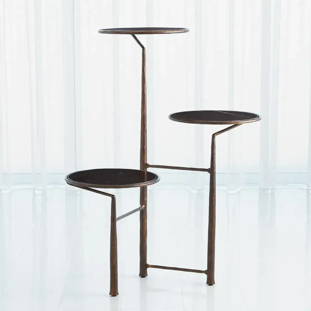 The Unity Pedestal is constructed of cast iron with a bronze finish and three black marble surfaces. From a fashion forward perspective, Global Views offers accessories, furniture, statement lighting, and an assortment of rugs and mirrors to add beauty and joy to your home.