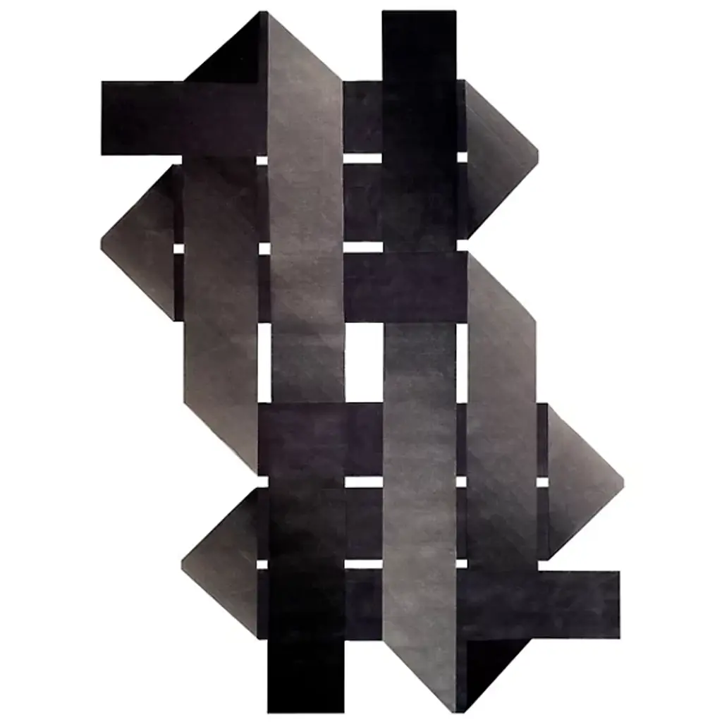 Make a stylized addition to interior floors with the open and arresting form of the Unlimited Area Rug from Illulian. An abstract design assembled from gradient-hued and interwoven wool strips hand-woven in Nepal, its open spaces and pointed accents command the area around it, demanding attention and enriching its surroundings with a signature verve.