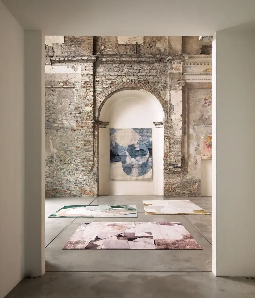 Untitled is an ambitious project that translates four exceptional paintings by artist Eric Blum into a collection of hand-knotted rugs, blending the contemporary essence of his works with the ancient tradition of carpet weaving.Eric Blum’s paintings invite the viewer to explore the edges of perception — those liminal spaces where the boundaries between form and ambiguity blur. His compositions exist somewhere between the tangible and the ephemeral, between the real and the perceived. This sense of uncertainty is deeply embedded in his process, in which forms are often fragmented, transformed, and layered using translucent materials such as watercolor, ink, and wax-infused silk. Through the Untitled collection, we have captured the intricate richness of Blum’s forms and colors, translating them into a new language: hand-knotted rugs crafted from fine silk, wool, and linen yarns.