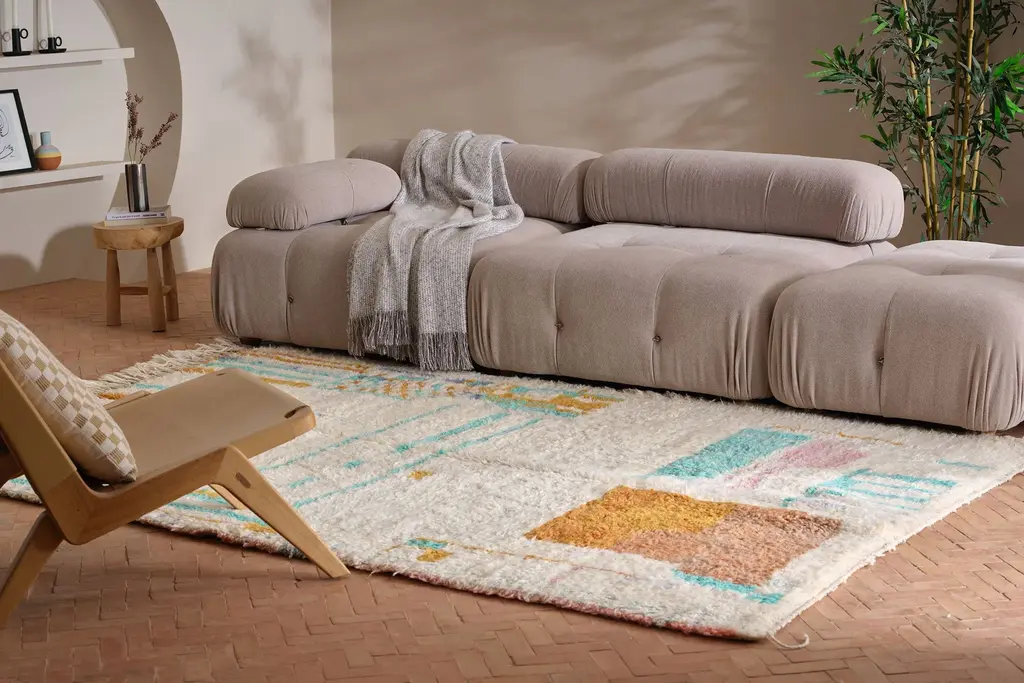 One-of-a-kind new rug, hand-knotted near the small city of Boujad in the Chaouia-Ouardigha region of Morocco