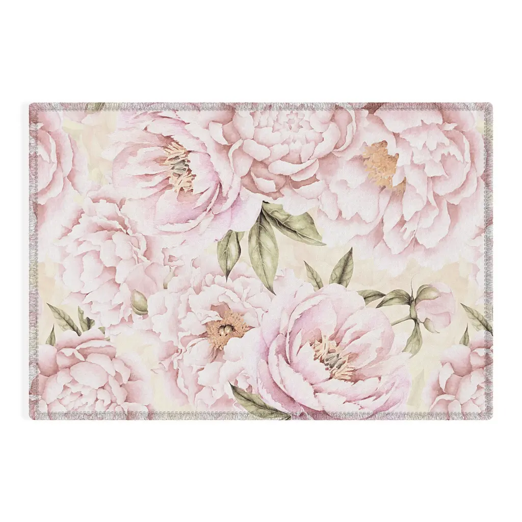 Utart Pastel Blush Pink Spring Watercolor Peony Flowers Outdoor Rug, 4'x6'