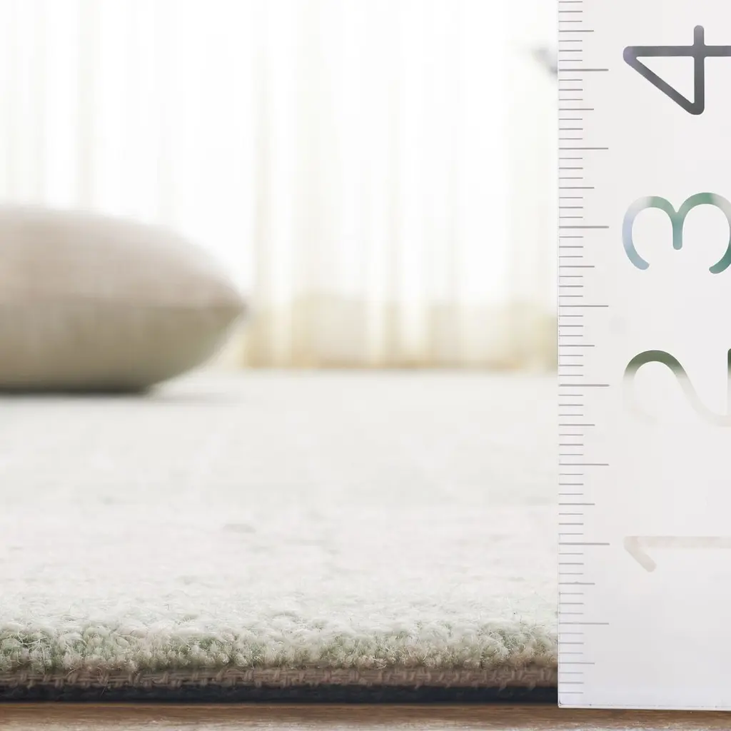 Elevate your home with the serene sophistication of our hand-tufted area rug, boasting a plush Indian wool pile that promises enduring comfort and style. This luxurious 3' x 5' small rectangle rug, standing at a height of 5/8'', is meticulously crafted in India, the heart of traditional rug-making artistry. Its modern style seamlessly blends with contemporary aesthetics, while its lush green and ivory hues create a gentle yet impressive statement. The rug exhibits an enchanting pattern that features a harmonious blend of bold lines and delicate textures. Encased within a richly defined border, the contrasting grid-like core is complemented by a repeating geometric motif, exuding balance and elegance. This thoughtful design provides a versatile backdrop that can either stand as a centerpiece or complement a myriad of interior decors. Indulge in the luxury of this hand-tufted masterpiece, a true testament to the skilled artisans who preserve their time-honored craft. This rug is not only a touchpoint of comfort but also a slice of heritage that anchors your space with grace and tranquility. Whether it's the centerpiece of a minimalist living room or a warm welcome in an entryway, its versatile presence is sure to enrich any space it graces.