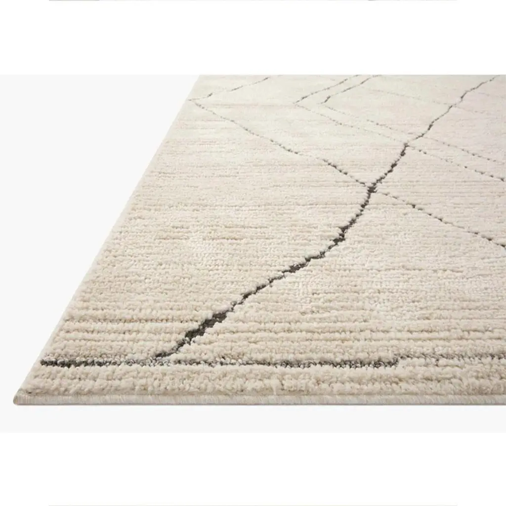 Rug swatch available! To order, choose SAMPLE in the size drop-down. Meet the 4’x6’ Vaela rug, a neutral textile that’s soft underfoot and easy to style. Shades of charcoal and ivory contrast elegantly in a diamond-shaped pattern inspired by Moroccan motifs. Power-loomed in Turkey from durable polyester and polypropylene, this versatile rug feels right at home wherever it’s placed.