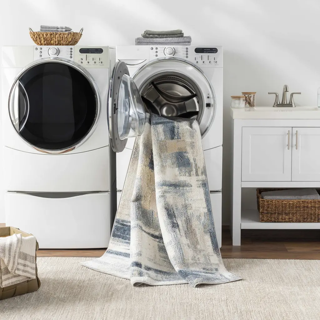 Collection: Vala Colors: Cream, Gray, Navy, Mustard, Sage, Dark Red Construction: Machine Woven Material: 100% Polyester Pile: Medium Pile Pile Height: 0.31" Styles: Contemporary Backing: Rubber Machine Washable: Yes Made In: Turkey Thickness: 0.39" Price Range: $$$$$ (Most Affordable)