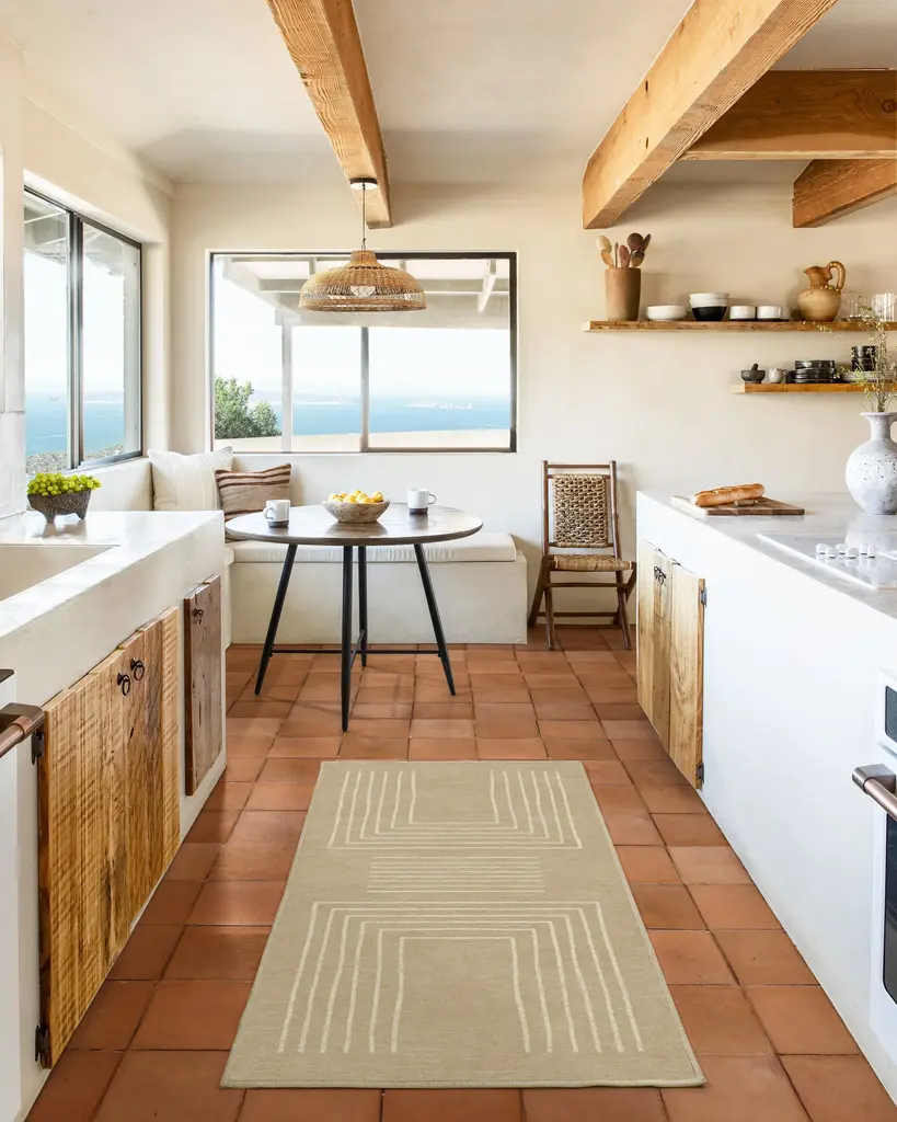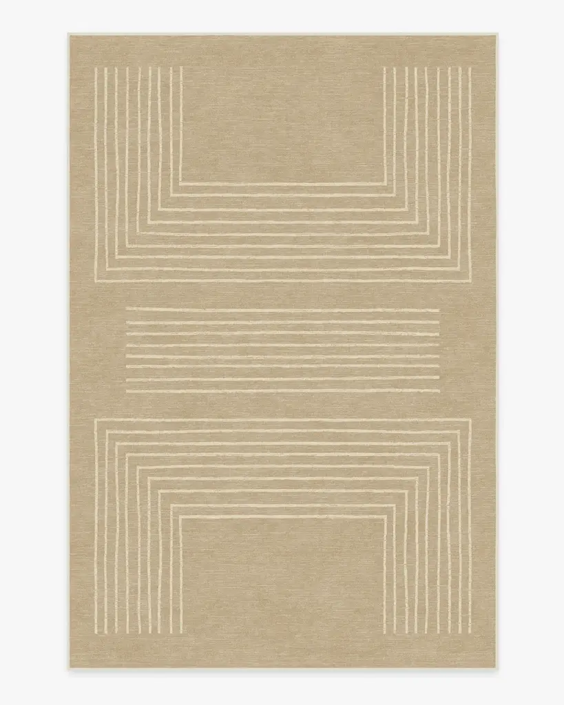 Neutral yet versatile, our Valencia Natural Rug blends artistically-designed light cream linework in a mirrored motif with a soft beige background. Water-resistant, stain-resistant, and machine-washable. Rug colors may vary slightly according to your device and the lighting in your space.