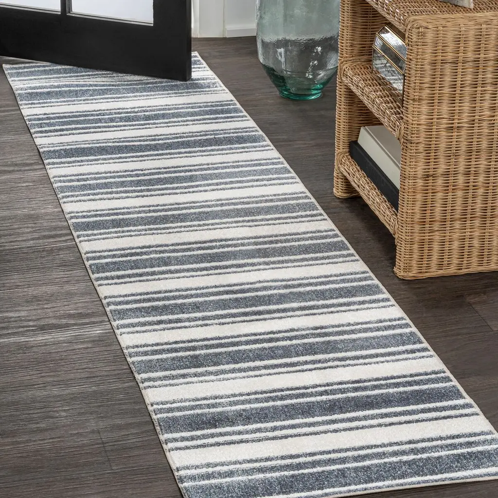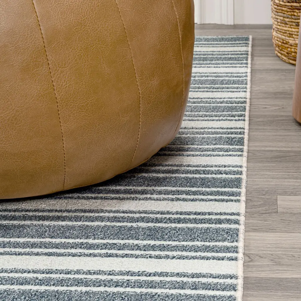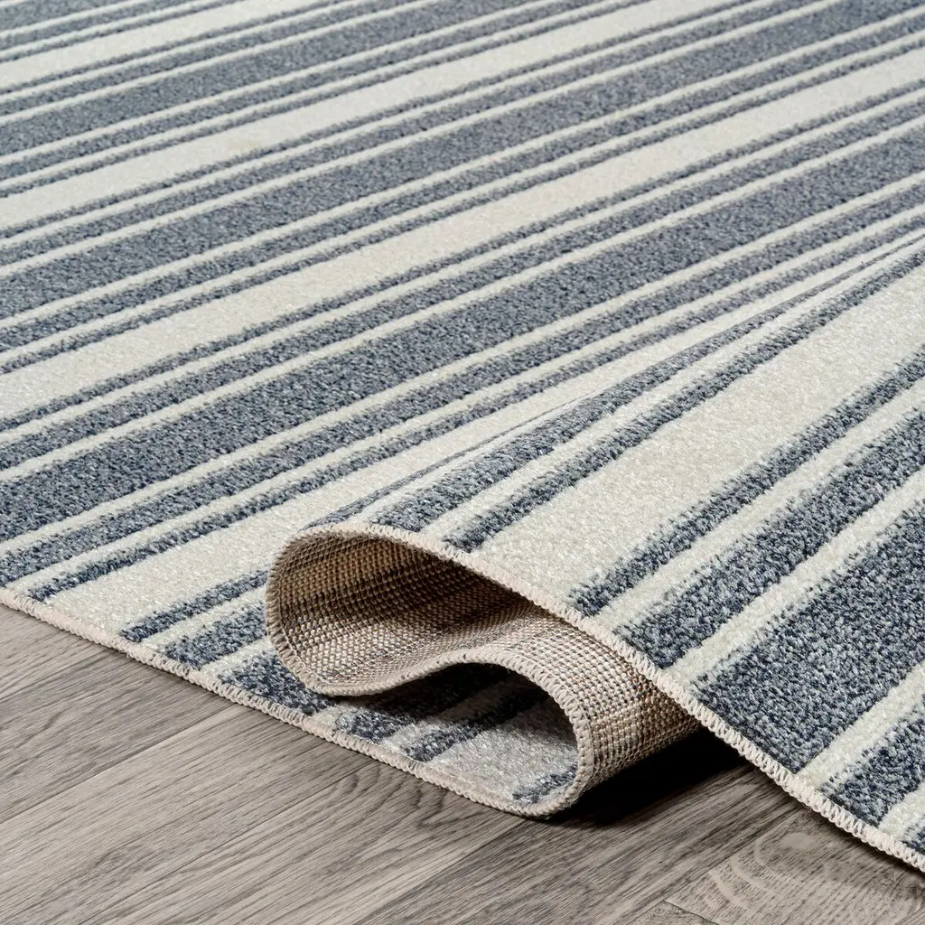 This two-toned rug combines stripes of different thickness to create a bold but classic design. Being machine-washable means it's easy to care for and is great for homes with kids and pets. It's the perfect accent for a casual or farmhouse styled living room, home office, or bedroom.