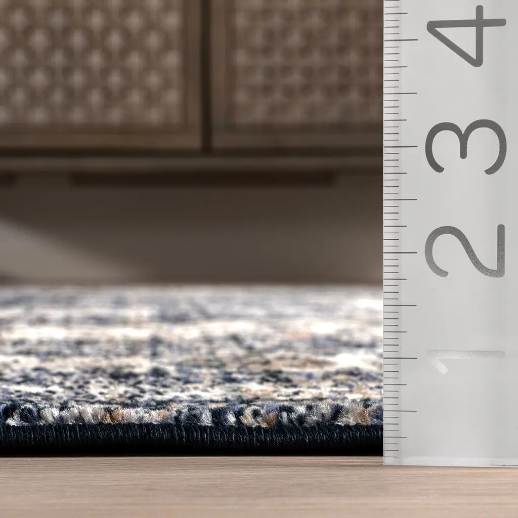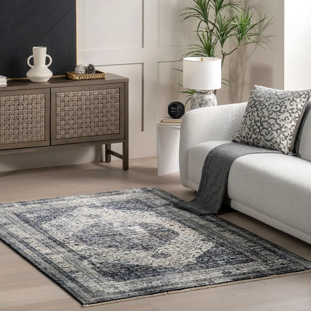 Elevate your space with this traditional medallion fringe area rug. This floor covering features a beautiful color palette that is purposefully distressed to mimic that iconic vintage look and has dainty 1” fringes lining both ends. Machine made using durable polypropylene, this rug is built to last in high traffic areas of your home. Look no further with our easy to care for and pet-friendly area rugs.