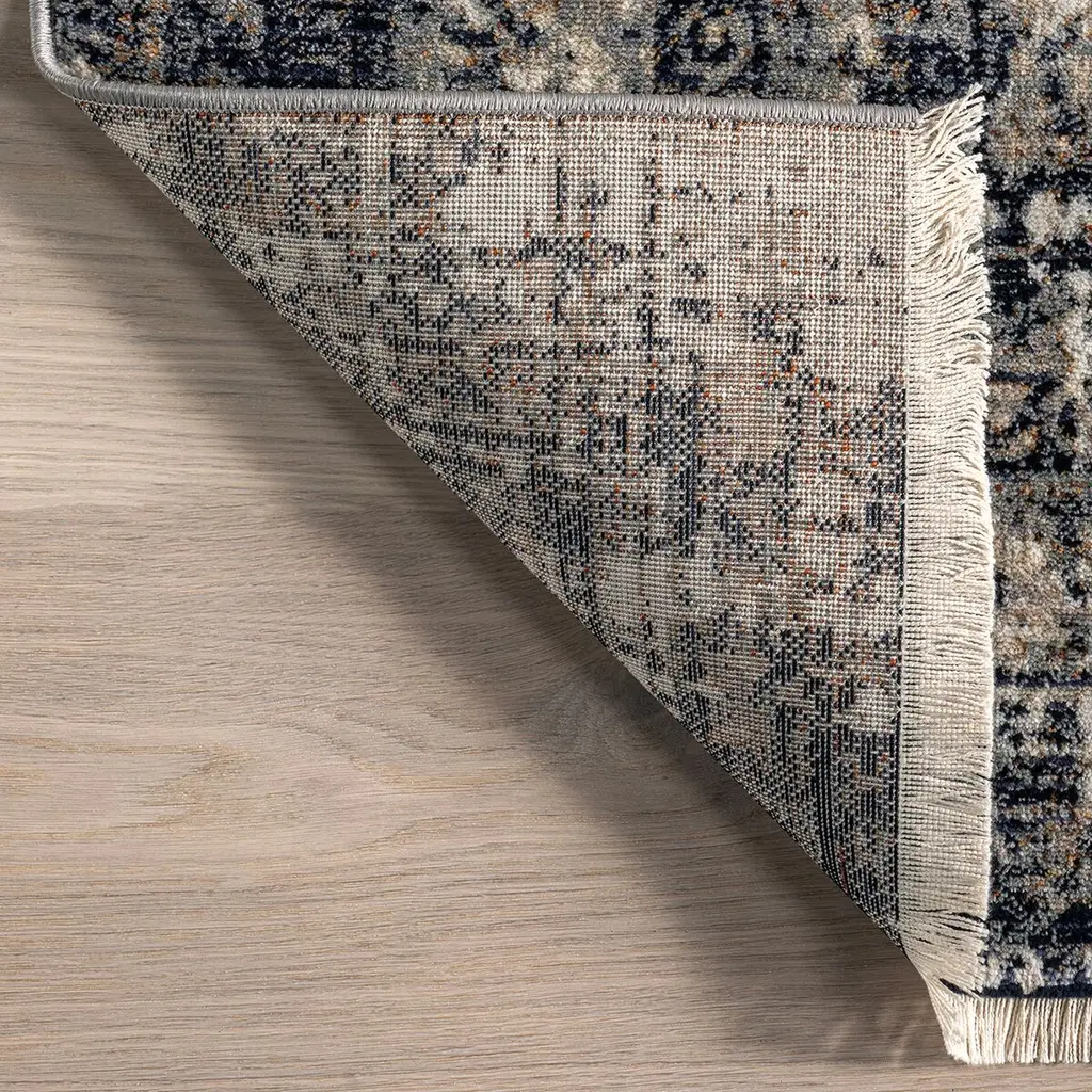 Elevate your space with this traditional medallion fringe area rug. This floor covering features a beautiful color palette that is purposefully distressed to mimic that iconic vintage look and has dainty 1” fringes lining both ends. Machine made using durable polypropylene, this rug is built to last in high traffic areas of your home. Look no further with our easy to care for and pet-friendly area rugs.