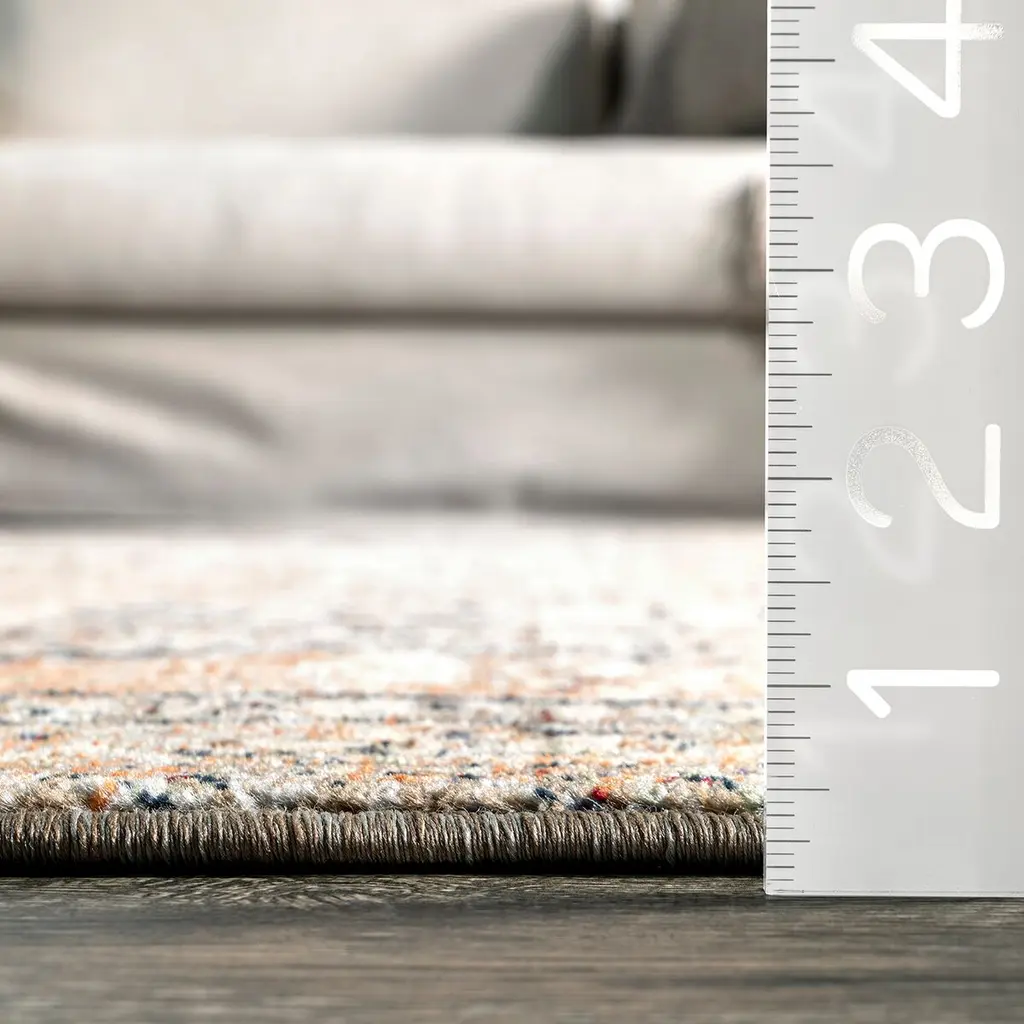 Elevate your space with this traditional medallion fringe area rug. This floor covering features a beautiful color palette that is purposefully distressed to mimic that iconic vintage look and has dainty 1” fringes lining both ends. Machine made using durable polypropylene, this rug is built to last in high traffic areas of your home. Look no further with our easy to care for and pet-friendly area rugs.