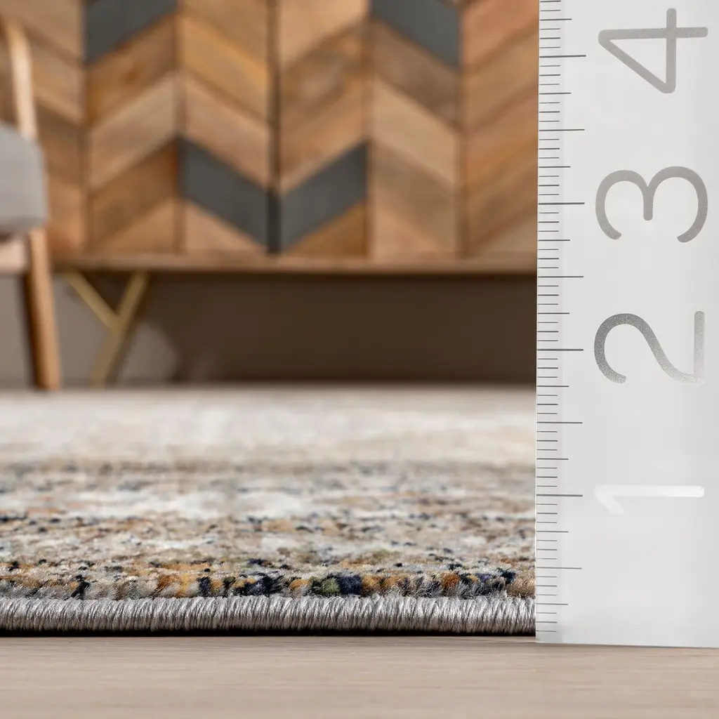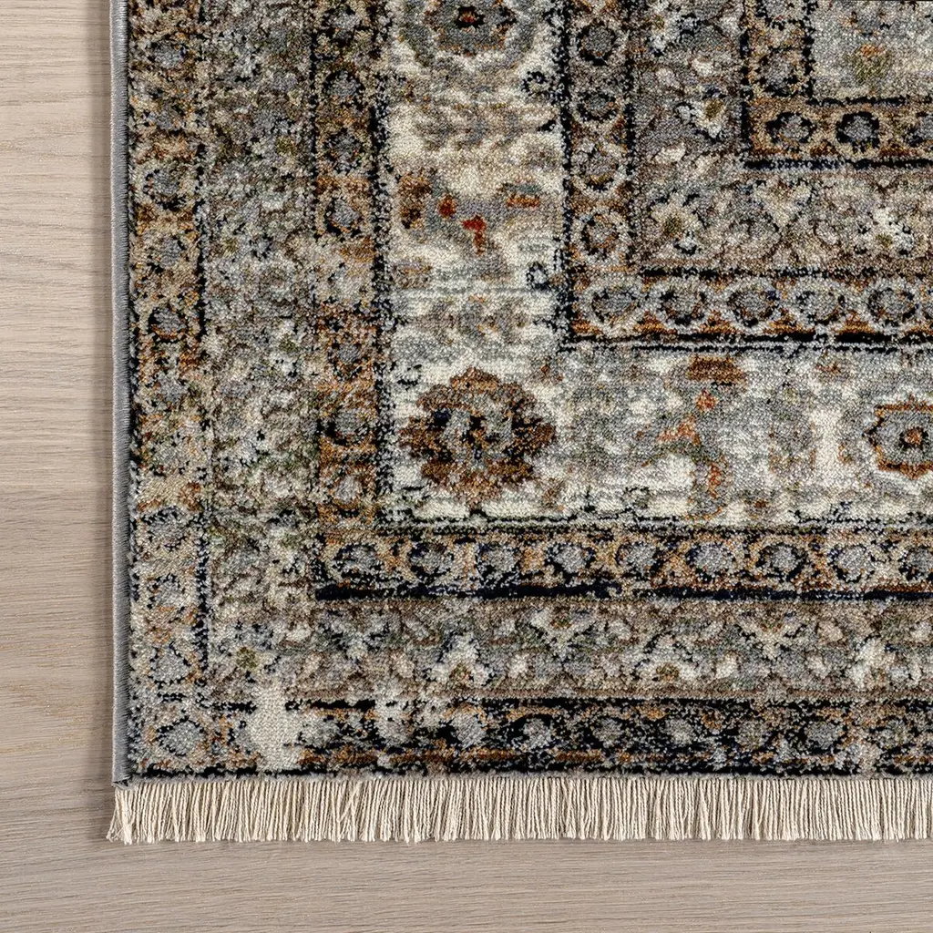 Elevate your space with this traditional medallion fringe area rug. This floor covering features a beautiful color palette that is purposefully distressed to mimic that iconic vintage look and has dainty 1” fringes lining both ends. Machine made using durable polypropylene, this rug is built to last in high traffic areas of your home. Look no further with our easy to care for and pet-friendly area rugs.