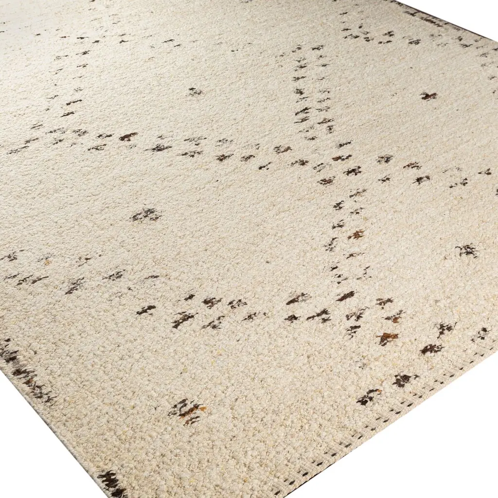 This handwoven wool flat-weave rug takes inspiration from the geometric motifs of Beni Ourain floor coverings. A rug pad is recommended to prevent slipping and extend the life of the rug.