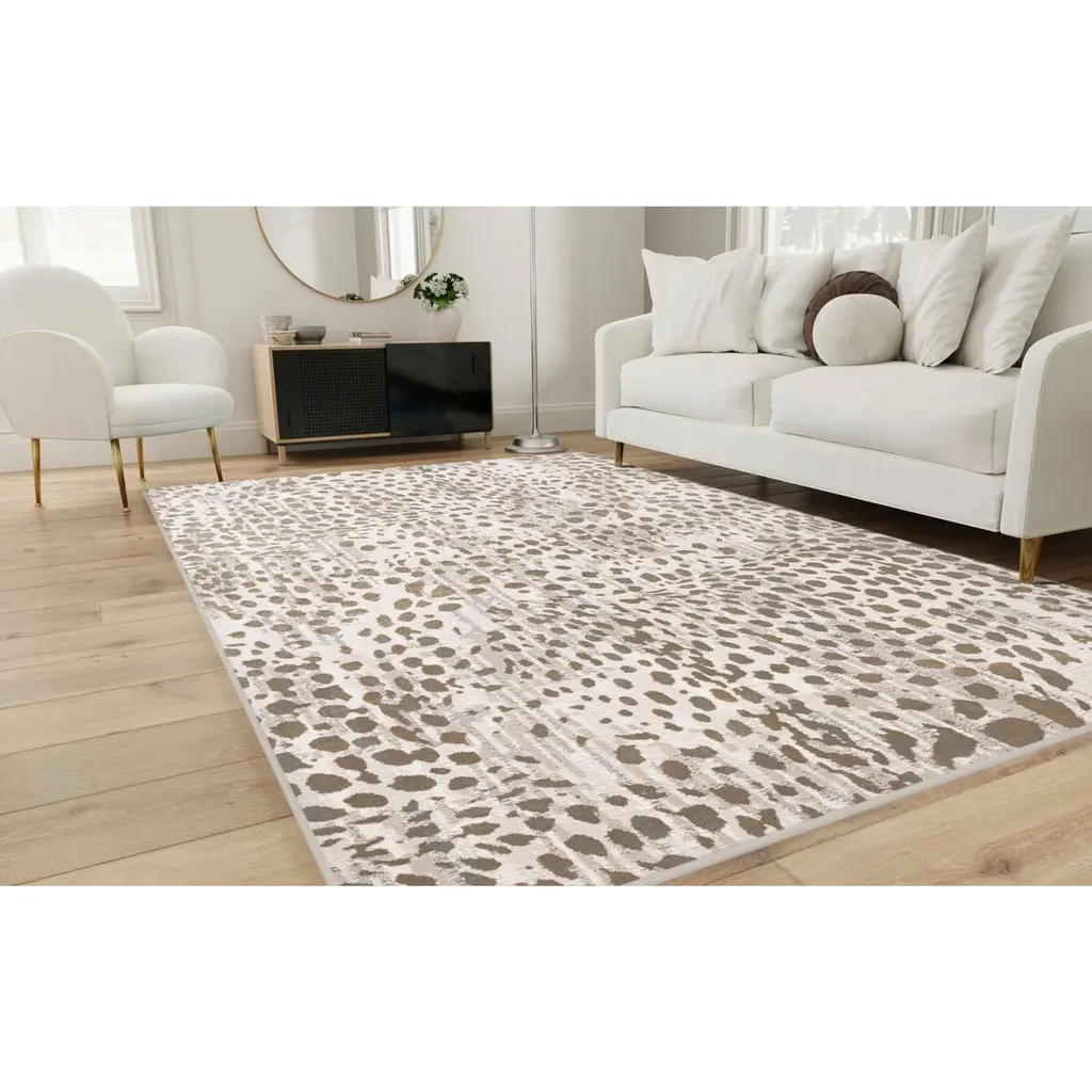 Dive into the Vanhorn Collection, where modern luxury meets practicality. Crafted in Turkey, these rugs blend polypropylene and polyester for durability and easy care. The unique high-low pile adds depth to the abstract and animal prints, enveloped in a warm palette of brown, ivory, and tan. Perfect for any room, they resist stains, fading, and water, making them ideal for homes with pets and kids.