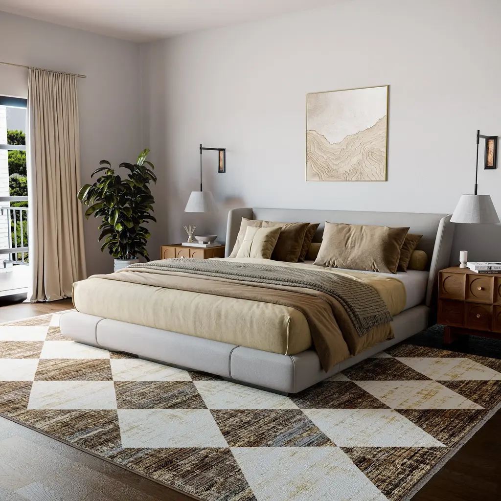Vanni Checkered Fringed Rug | Beige - 6' 7" X 10' 2"