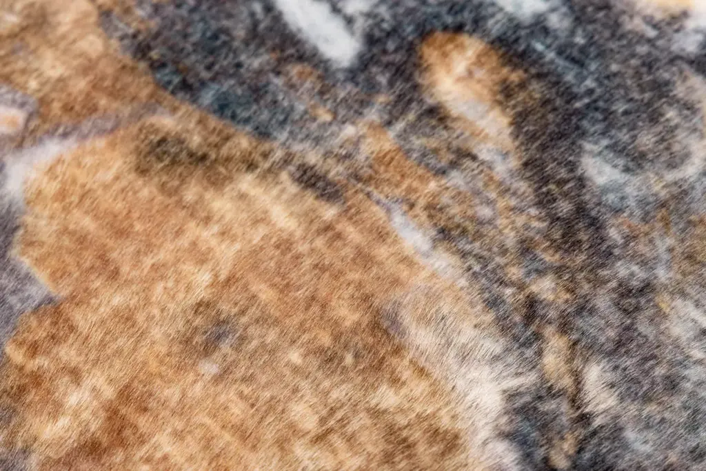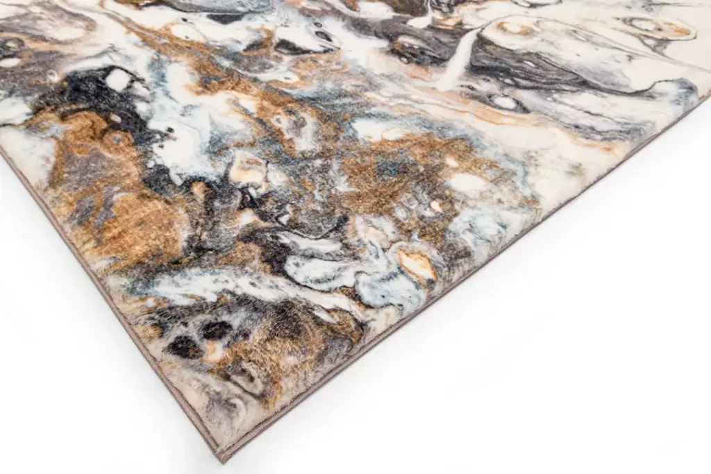 Add an element of contemporary style to your living room or bedroom with our Vapor rug. Featuring a soft feel underfoot with a 1-inch faux fur shag pile, this rug showcases a marbled design in shades of ivory, charcoal, grey, gold and slate blue. This machine-woven rug is made of 100% polyester and is available in six different sizes.