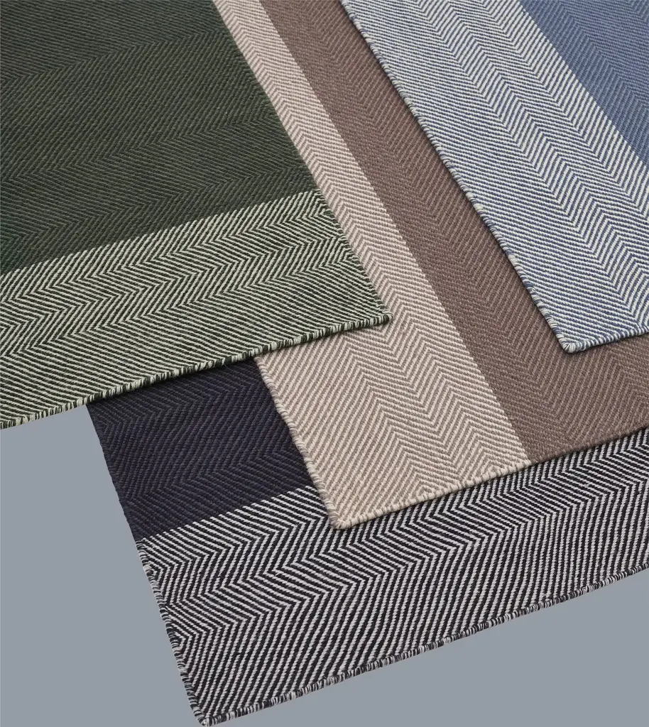 Bring warmth and geometric interest to any room with the Varjo Rug, a herringbone-woven design with subtle color-blocking. Translating to “shadows" in Finnish, Varjo plays with the contrasts created between layers of overlapping color. The rug is handwoven from 100% New Zealand wool and is offered in a range sizes and hues.