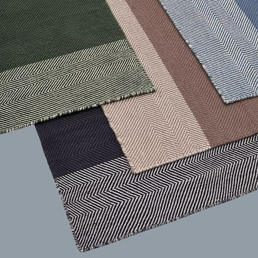 Update inside surfaces with the gorgeous gradient pattern of the Varjo Rug from Muuto. A casual, comforting presence, its rectangular form is woven by hand using pure New Zealand wool, creating a durable floor covering with a stylish herringbone pattern of distinctly lined strips that enhances but does not overpower its surroundings.