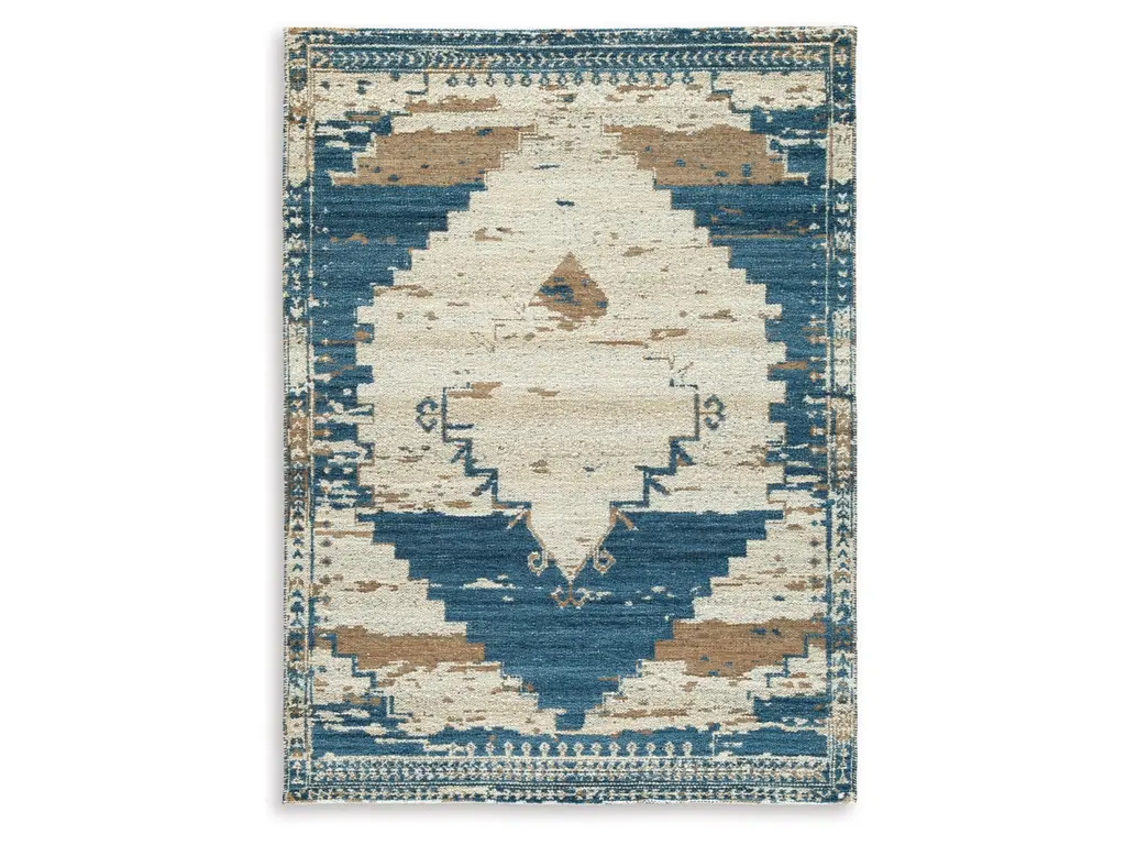 Invite a casual boho vibe into your space. Showcasing a distressed medallion design, the Varnler rug can mix and match with other accents to curate an eclectic aesthetic. Its blue, brown and tan palette exudes a relaxed feel, completing your living room or bedroom in style.