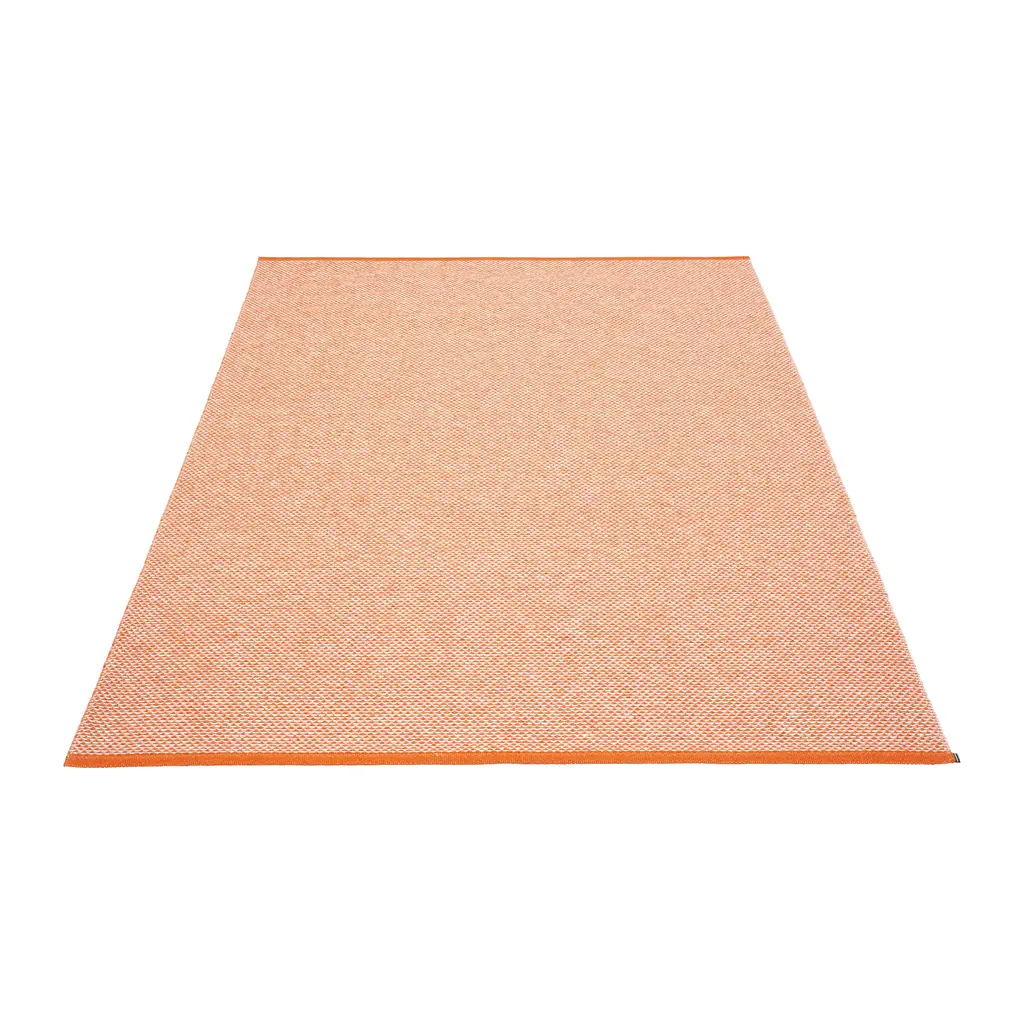 Pappelina’s Vera Pop rug features a bold, slightly raised dot pattern, inspired by the vibrant colors of Miami’s historic Art Deco district. A two-sided design equals double the fun: you can flip the carpet over when you feel like it’s time for a new color. The rug’s edges are reinforced and welded for extra durability, and you can wash the rug by hand or in a washing machine. The main material of the Vera Pop rug is Biovyn, a bio-attributed PVC that is made from wood-based tall oil, a residue from the wood industry. The carbon footprint of Biovyn is more than 90% smaller compared to conventional PVC. The sustainably produced plastic rug is a low-maintenance and practical choice for both indoor and outdoor spaces – its dimensions make it a perfect doormat for the hallway. The Vera rug is woven using traditional techniques in Dalarna, Sweden.