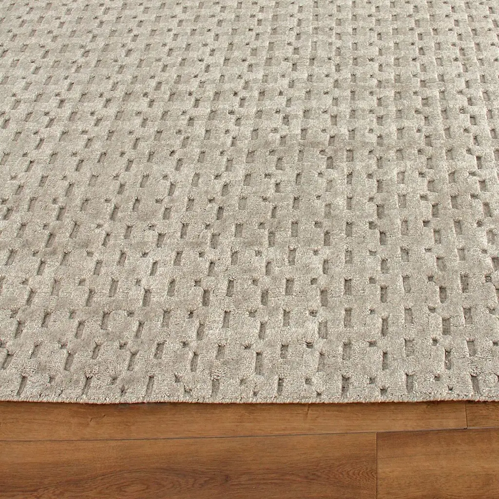 The versatility of a solid color rug with a little more intrigue. A mix of high and low geometric shapes gives the Monroe Silk rug its unique textural appearance. Beautifully hand made with bamboo fiber, this rug is the perfect accent to any space.