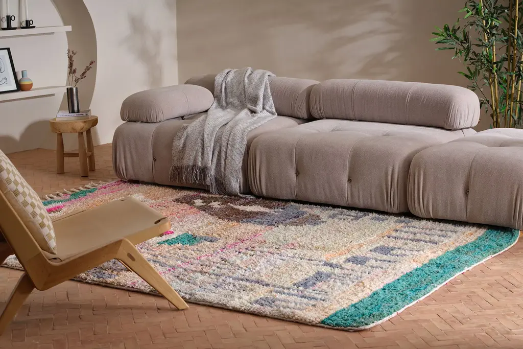 One-of-a-kind new rug, hand-knotted near the small city of Boujad in the Chaouia-Ouardigha region of Morocco