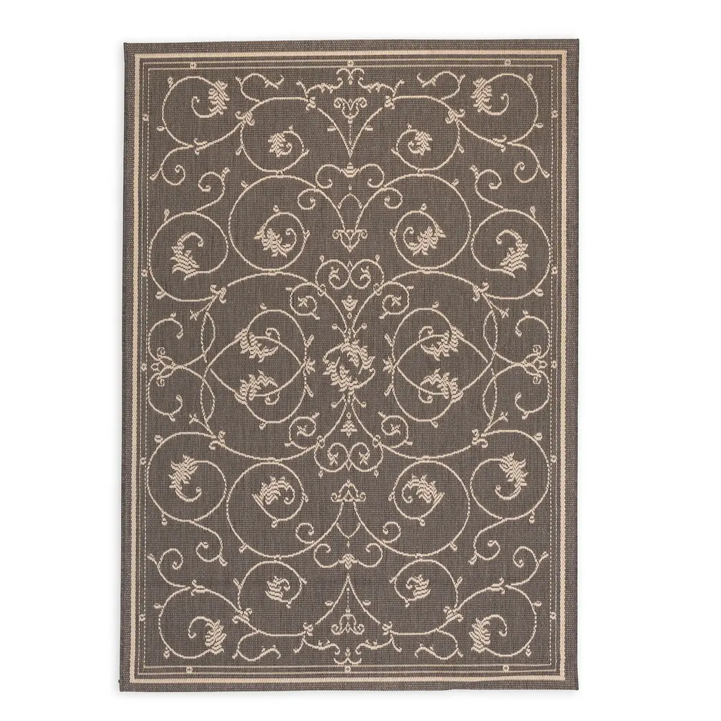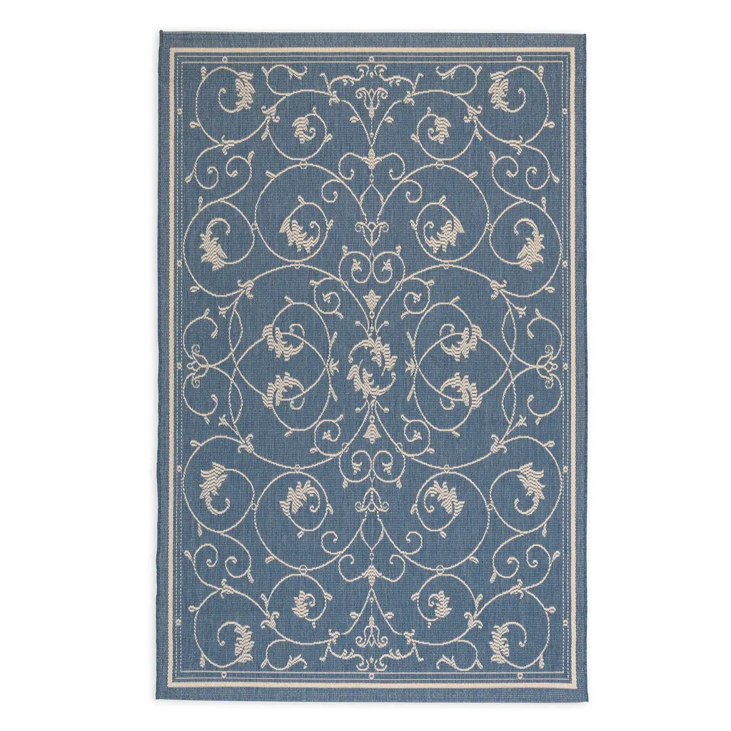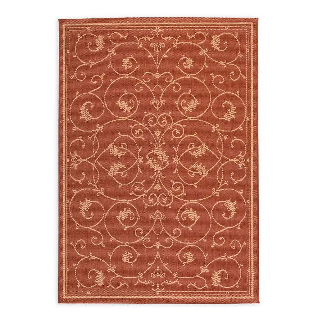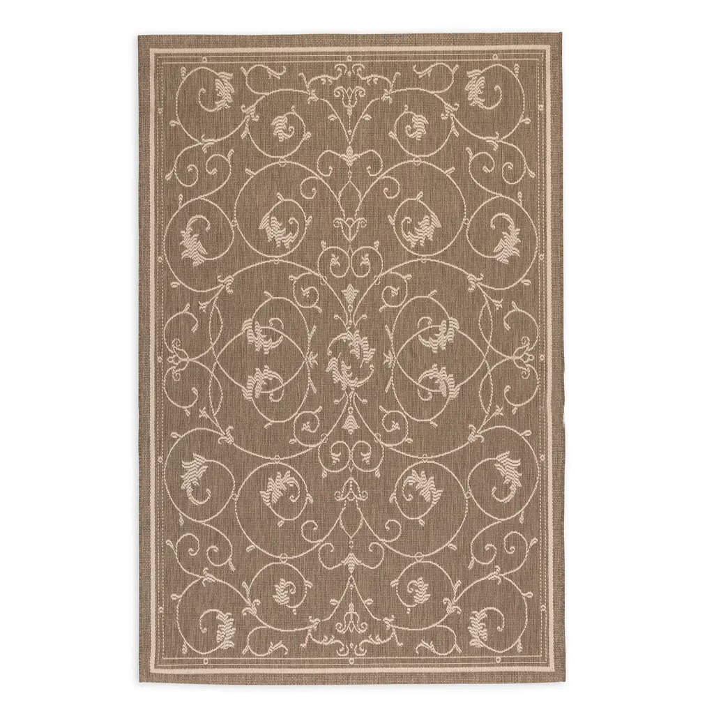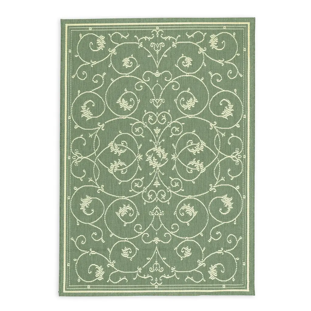 Our all-weather Veranda Rug is indoor-beautiful and outdoor-tough. It features an attractive scroll design in the colors you want, with the incredible durability you need.Soft and welcoming underfoot, this indoor/outdoor polypro area rug goes where you need it and looks great, too: kitchen, sun room, porch, patio and more.100% polypropylene flat-weave construction is colorfast, water-repellent, long-wearing and stain-resistant. Pattern varies slightly by size. Sizes are approximate. Imported.
