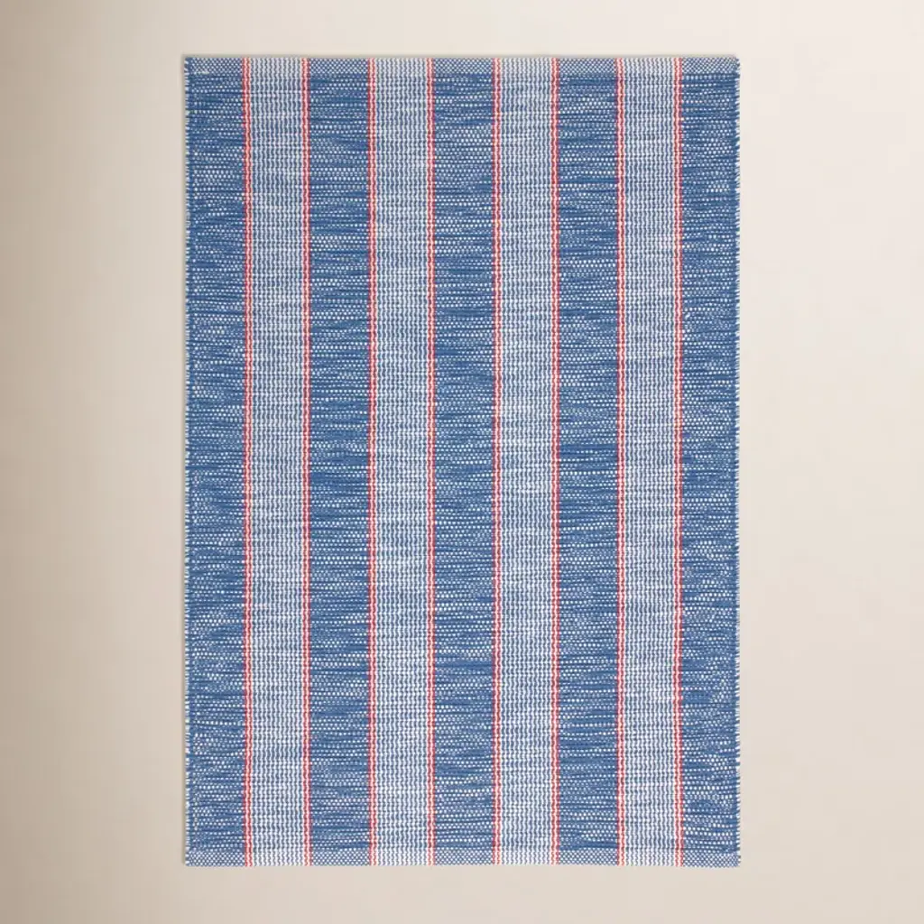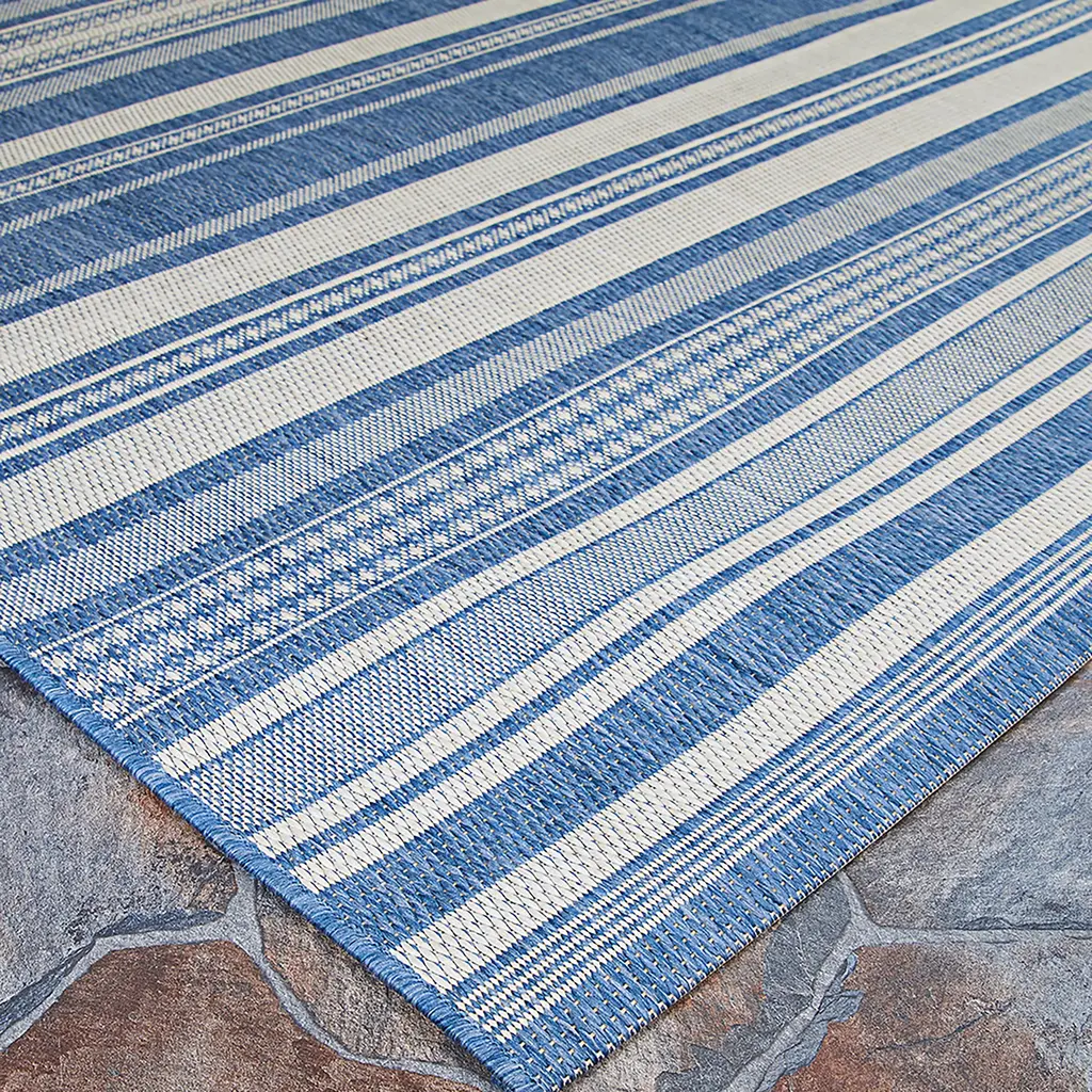 Our all-weather Veranda Striped Rug is distinctively designed to complement the classic styling of outdoor furniture while adding warmth to stone entryways and patio decks. Power-loomed of 100% fiber-enhanced Courtron™ polypropylene, this all-weather, pet-friendly area rug is stain, mold and mildew resistant. Flatwoven construction produces a low ⅛" pile allowing it to lie flat and clear under most doors. Soft and welcoming underfoot, this indoor/outdoor polypro area rug goes where you need it and looks great, too: kitchen, sun room, porch, patio and more. Sizes are approximate. Imported.